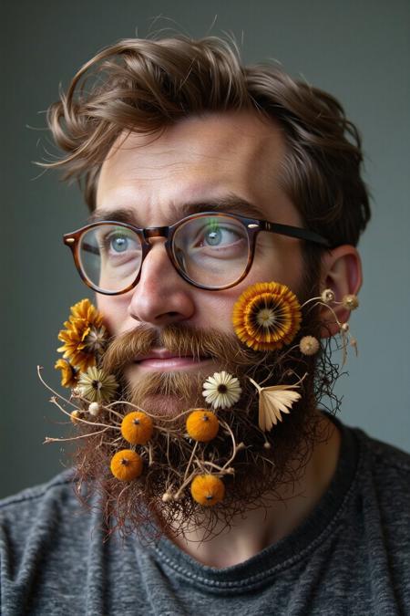 - dr13d_fl0w3r5, a man wearing glasses beard made of dried flowers