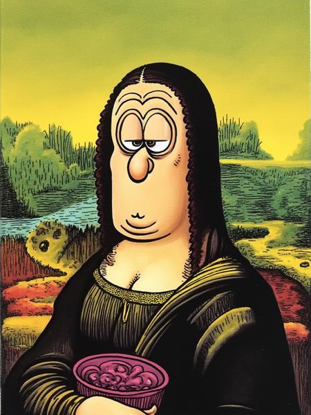 - d0nm4rt1n. Whimsical cartoon illustration in the style of Don Martin comics. Mona Lisa by Davinci