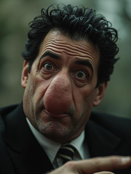 - Surreal cinematic photograph. Candid portrait of a Emperor Palpatine man with a large bulbous nose and exaggerated features. Shot on 35mm analog film. Subtle film grain. Natural and soft lightning, blurred bokeh background. Detailed skin texture. d0nm4rt1n. Photo in the style of Don Martin