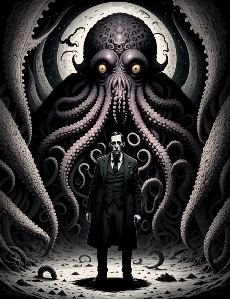 - dark monster, octopus, 1man, hp_lovecraft_style,