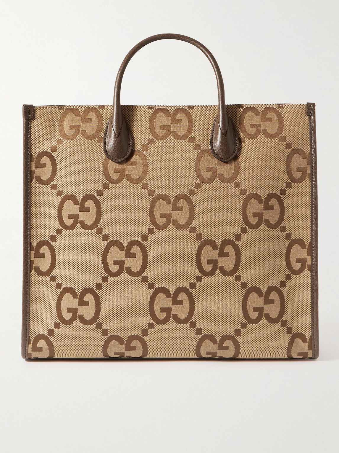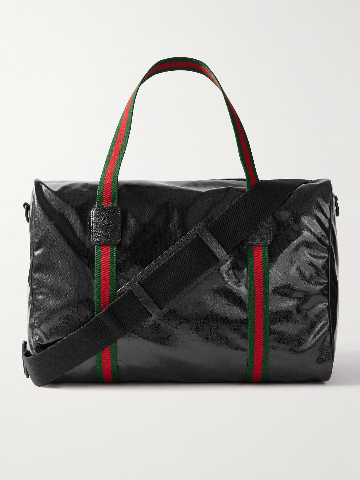 Leather- and Webbing-Trimmed Monogrammed Crystal Canvas Holdall