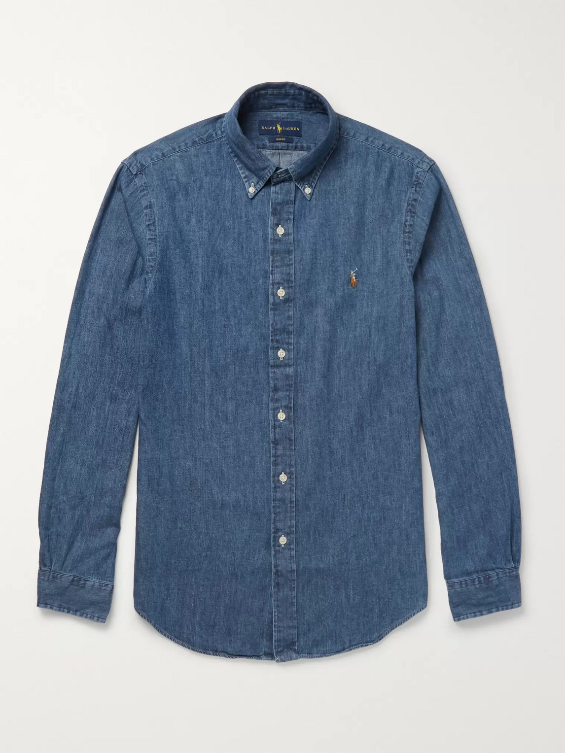 Slim-Fit Button-Down Collar Washed-Denim Shirt
