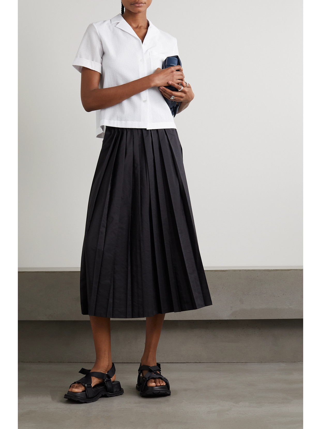 Ruffled sateen midi dress