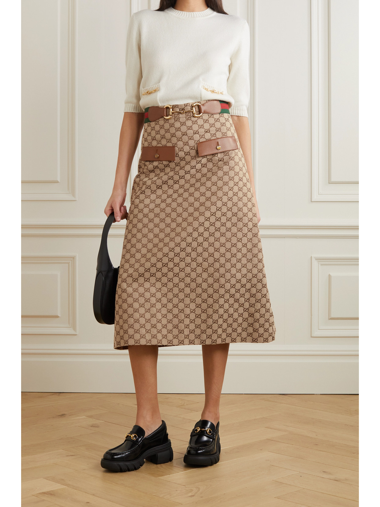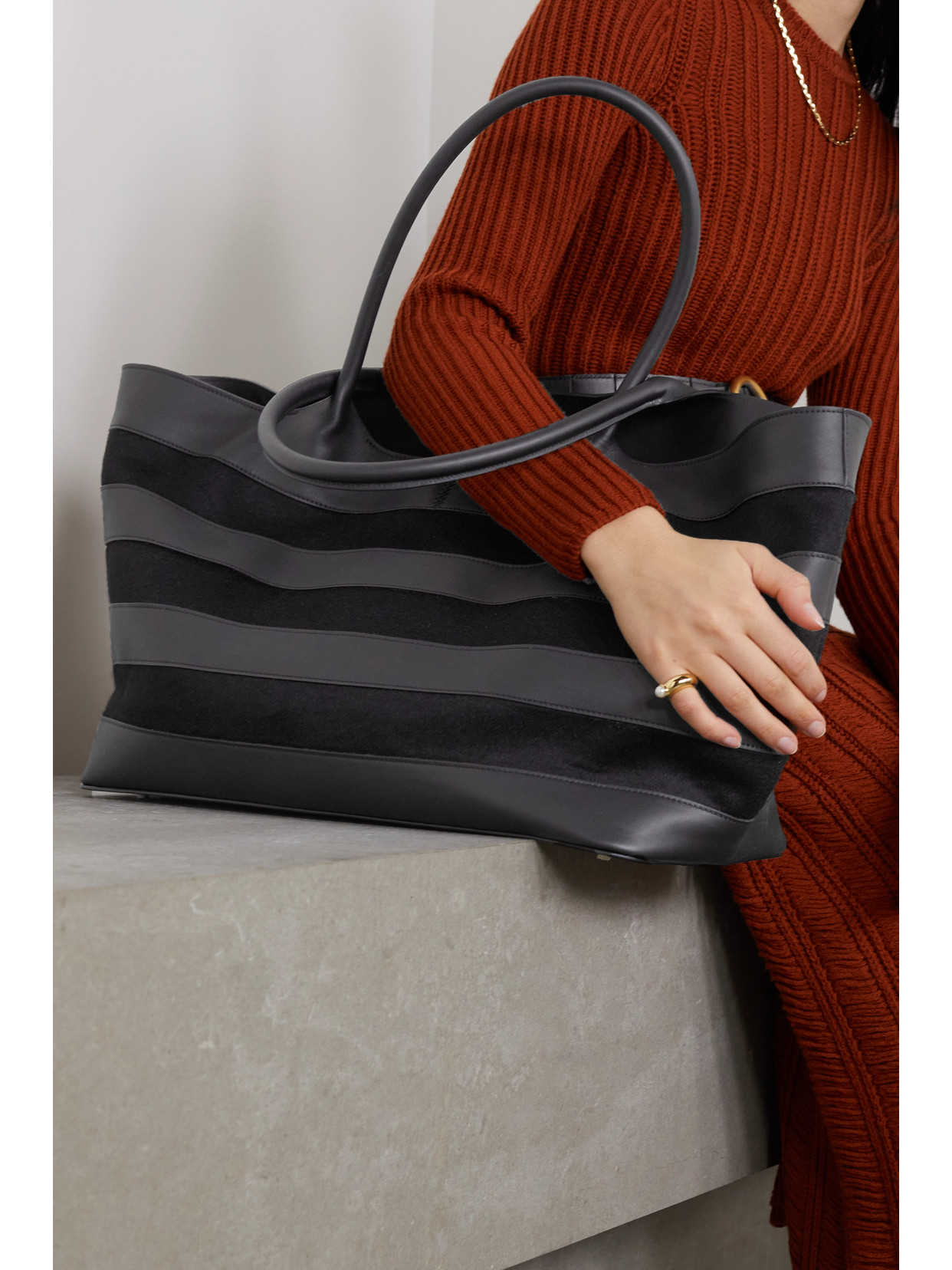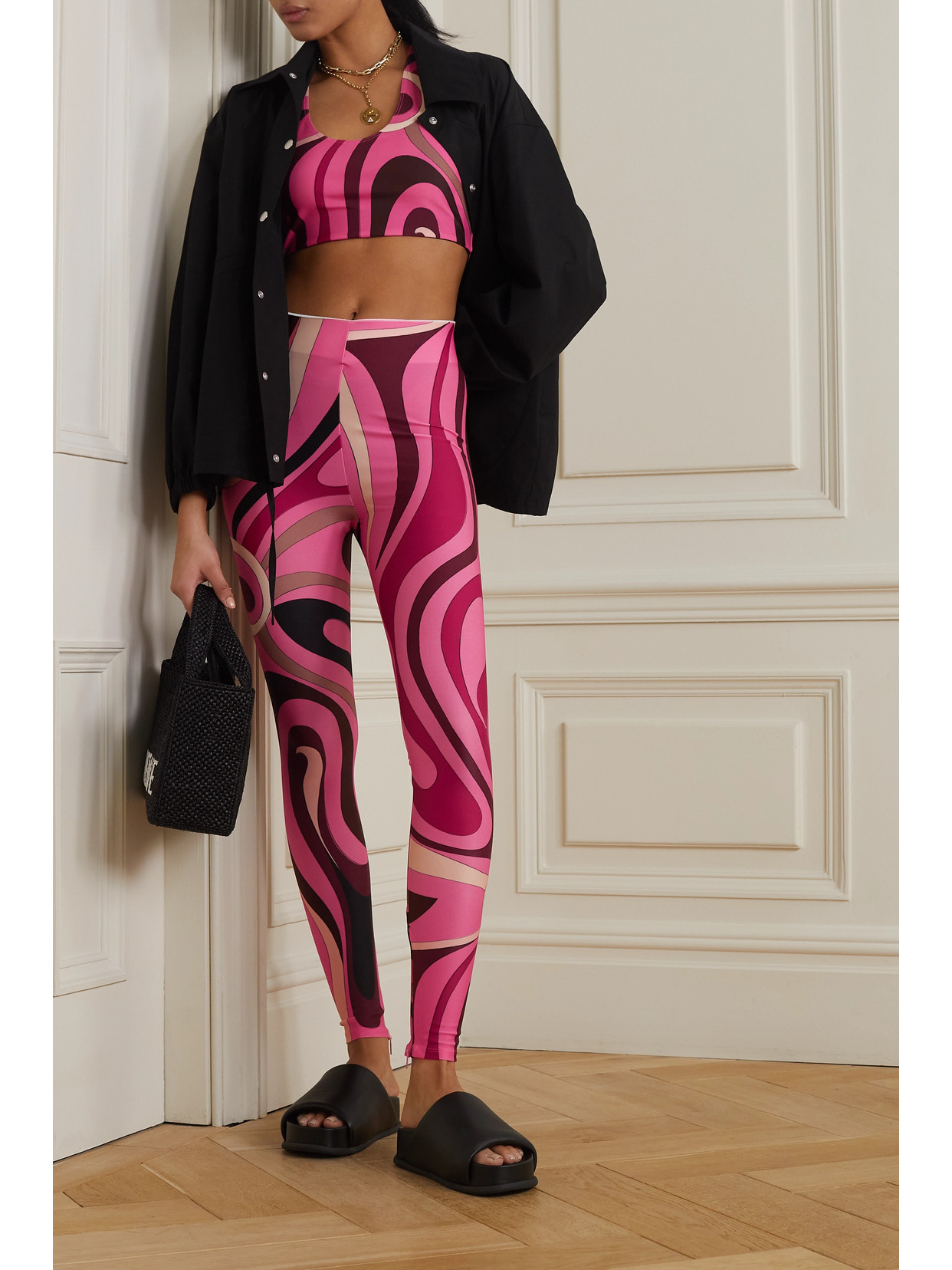 Oversized leather-trimmed jacquard jacket