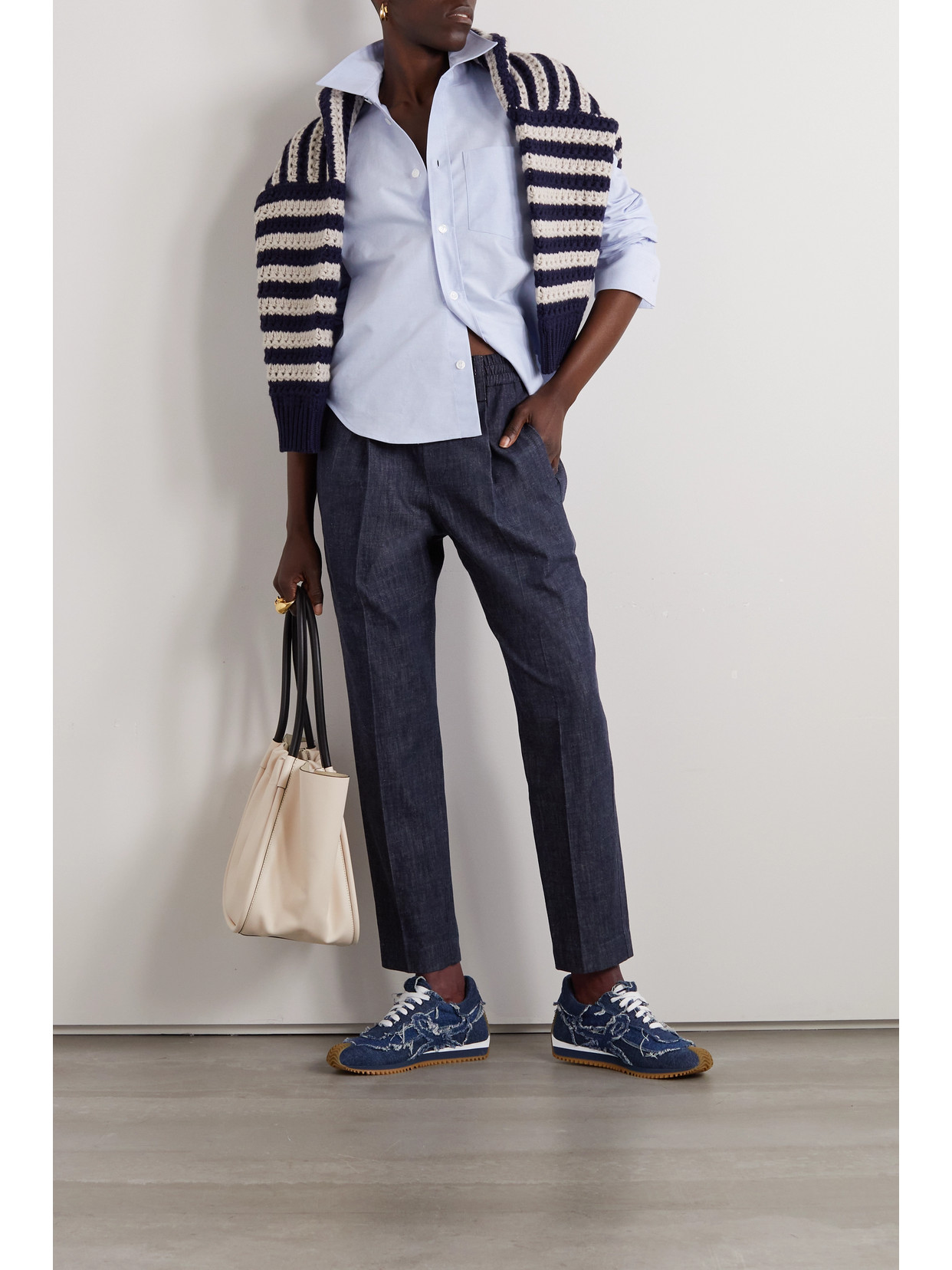Tapered cotton-chambray pants