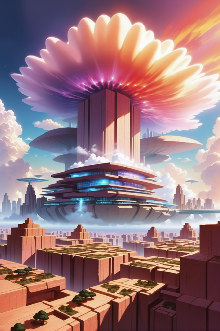 - fantasy, a Radiant,amazing fantasy cloud megacity outside of reality, masterpiece