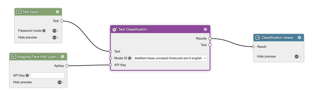 Visual blocks is an amazing tool from our friends at Google that allows you to easily create and experiment with machine learning pipelines using a visual interface. This repository contains the source code for custom components that allow you to use Hugging Face client and server models in your Visual Blocks pipelines. We've created a few nodes supporting different tasks and models following our Tasks definitions.