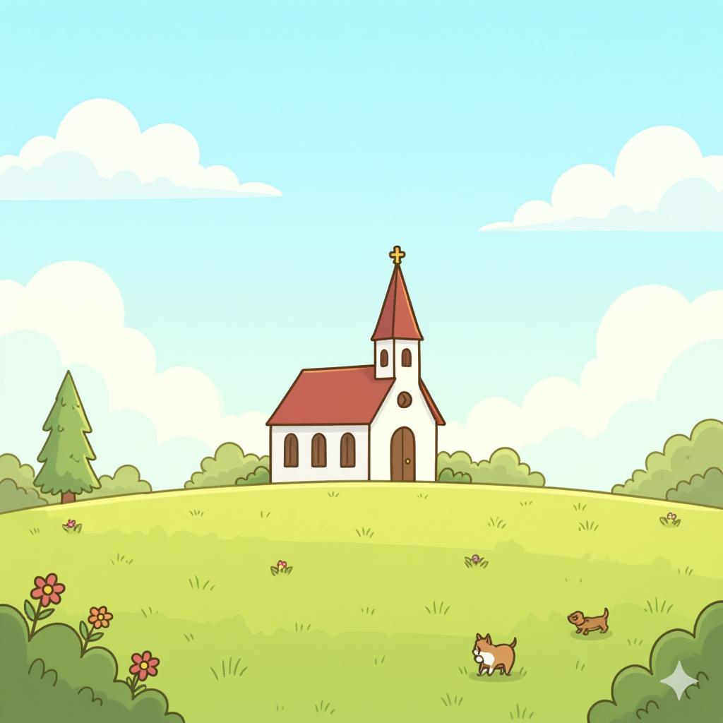 image = pipeline('A church in a field on a sunny day, [trigger] style.').images[0]