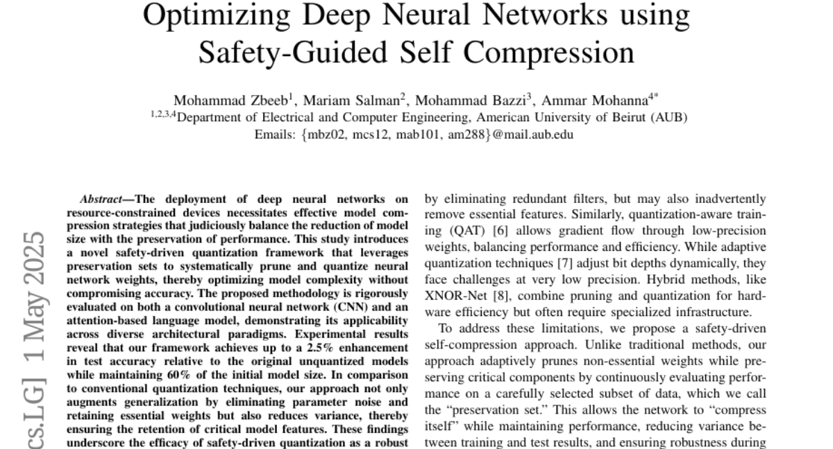 Optimizing Deep Neural Networks using Safety-Guided Self Compression