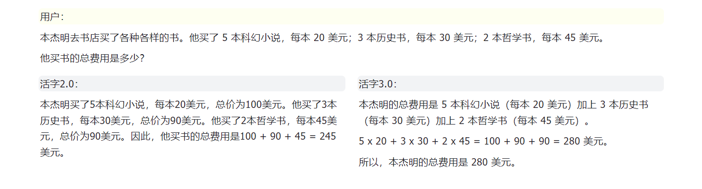 下面是活字3.0在MT-Bench-zh评测集上的生成效果展示,并与活字2.0(RLHF版本)进行对比: