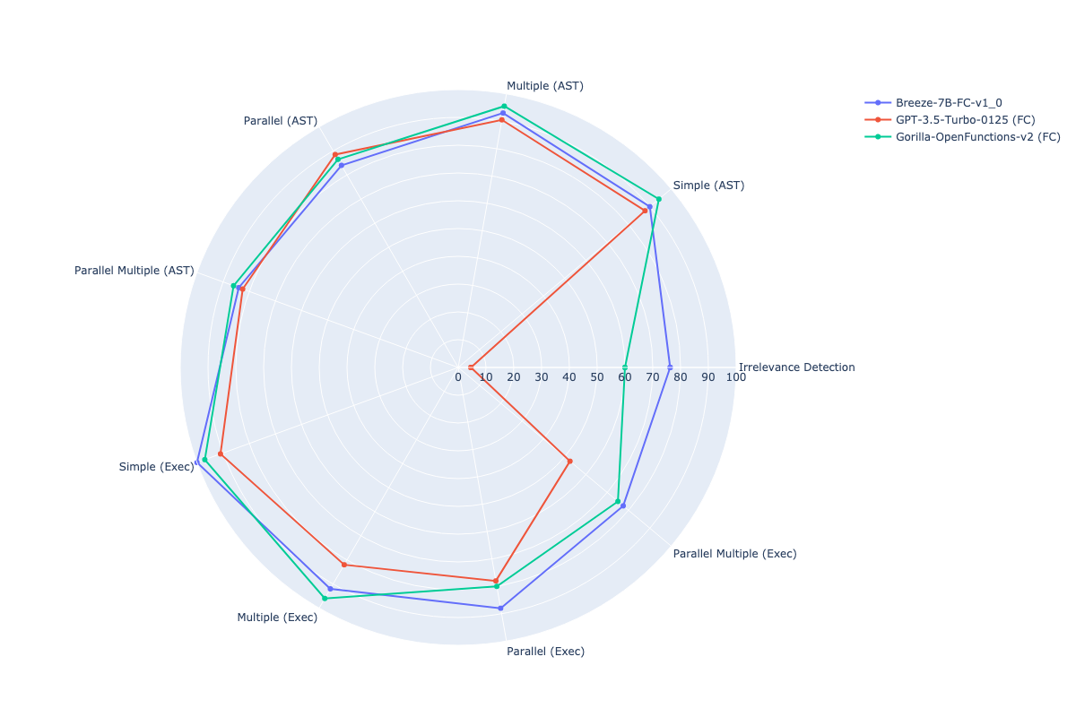 | Breeze-7B-FC-v1_0 (FC) | 78.18 | 72.50 | 82.00 | 86.00 | 76.50 | 67.00 | 88.00 | 88.00 | 80.00 | 60.00 |