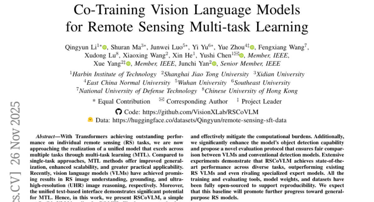 Co-Training Vision Language Models for Remote Sensing Multi-task Learning