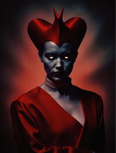 - spectral glow, chromatic grain, The Queen of Hearts from Alice in Wonderland