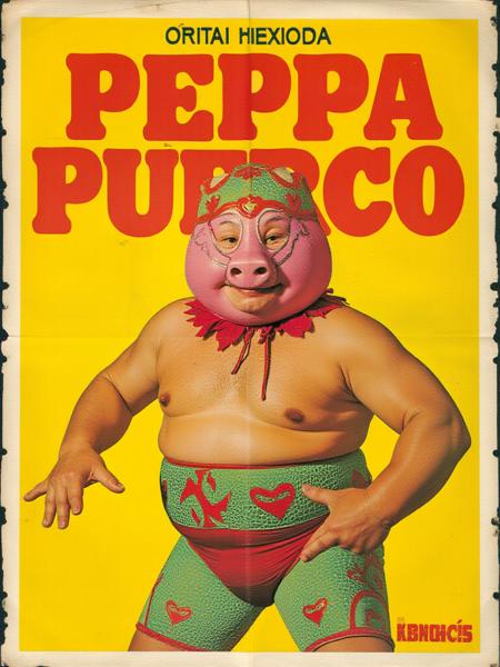 - lucha libre poster, featuring a wrestler with a mask inspired by Peppa Pig