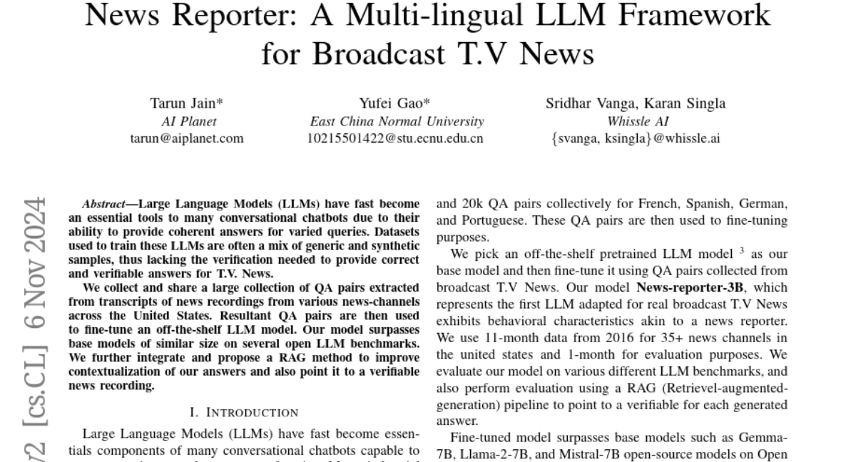 News Reporter: A Multi-lingual LLM Framework for Broadcast T.V News