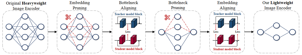 SlimSAM is a novel SAM compression method, which efficiently reuses pre-trained SAMs without the necessity for extensive retraining. This is achieved by the efficient reuse of pre-trained SAMs through a unified pruning-distillation framework. To enhance knowledge inheritance from the original SAM, we employ an innovative alternate slimming strategy that partitions the compression process into a progressive procedure. Diverging from prior pruning techniques, we meticulously prune and distill decoupled model structures in an alternating fashion. Furthermore, a novel label-free pruning criterion is also proposed to align the pruning objective with the optimization target, thereby boosting the post-distillation after pruning.