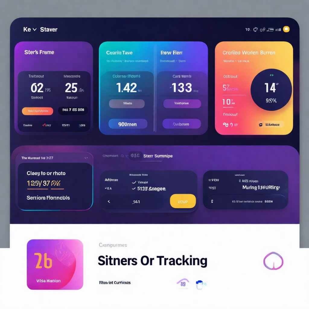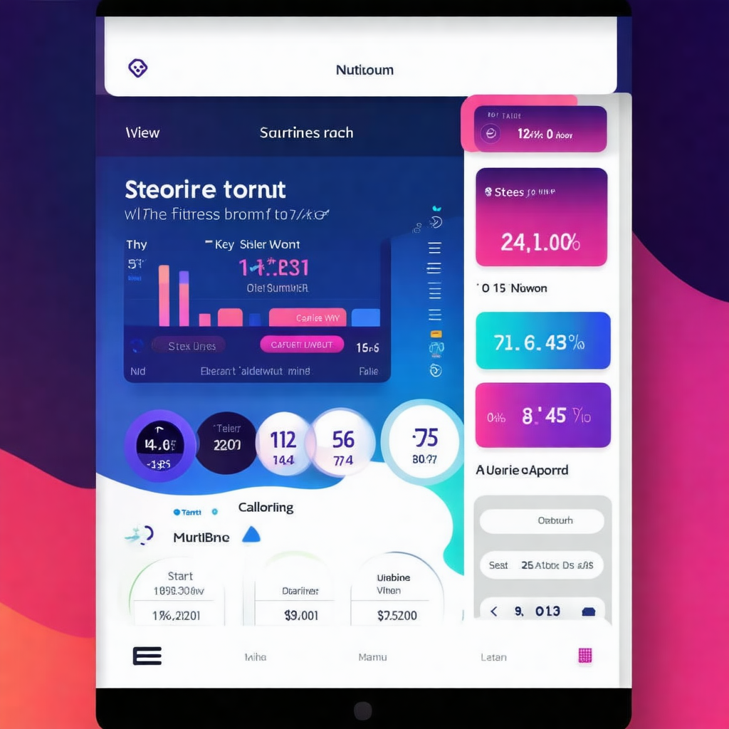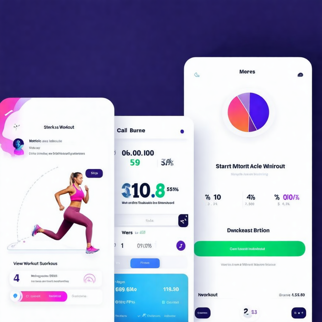 image = pipeline('Create a modern user interface design for a mobile application that focuses on fitness tracking. The layout should include a vibrant dashboard displaying key metrics such as steps taken, calories burned, and workout summaries. Incorporate interactive elements like buttons for starting workouts, viewing progress, and accessing nutrition information. Use a color palette that conveys energy and motivation, with clear typography and intuitive navigation.').images[0]