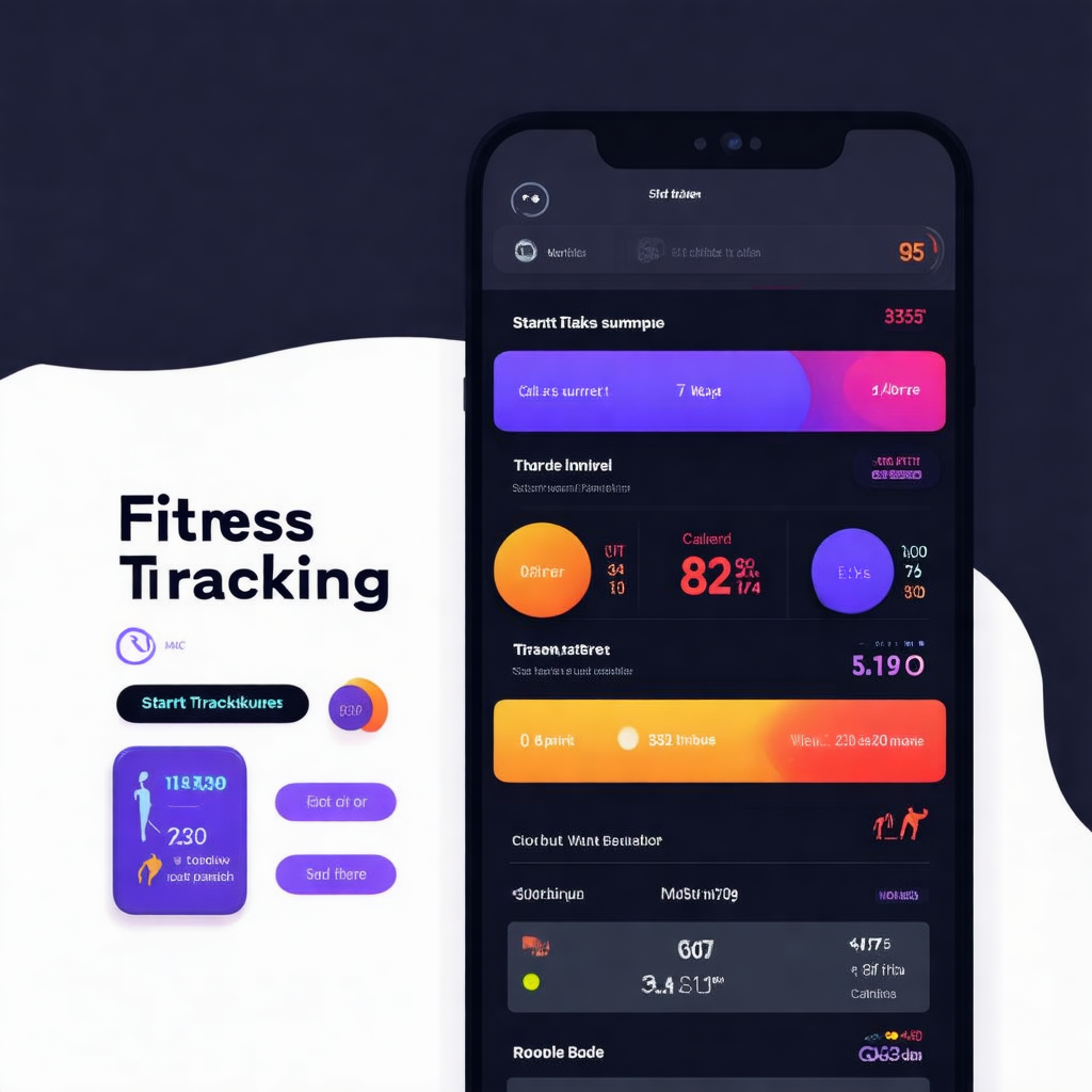 - Create a modern user interface design for a mobile application that focuses on fitness tracking. The layout should include a vibrant dashboard displaying key metrics such as steps taken, calories burned, and workout summaries. Incorporate interactive elements like buttons for starting workouts, viewing progress, and accessing nutrition information. Use a color palette that conveys energy and motivation, with clear typography and intuitive navigation.