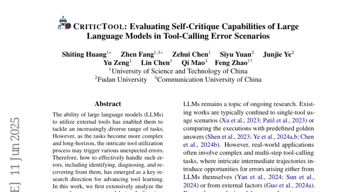 CRITICTOOL: Evaluating Self-Critique Capabilities of Large Language