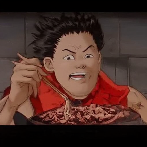 - a scene from akira, a 8 year old girl and an old woman walking across a street