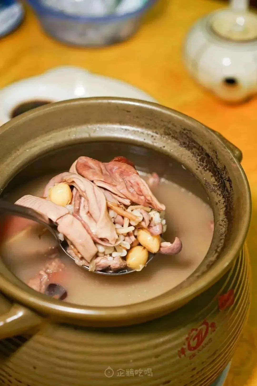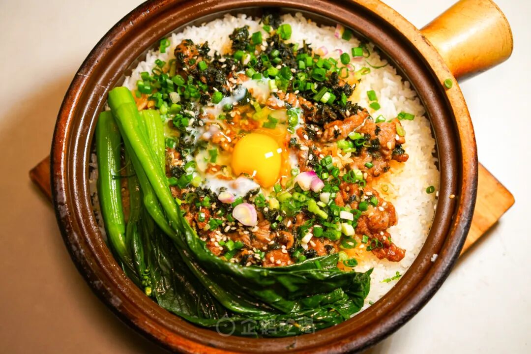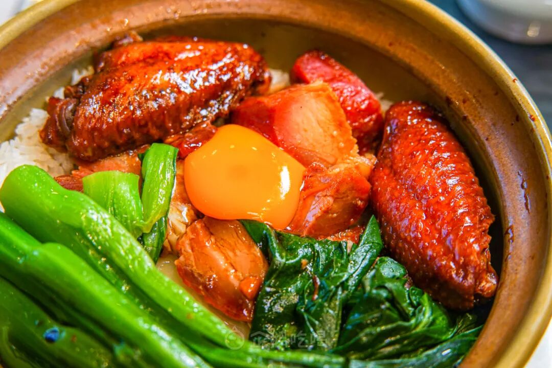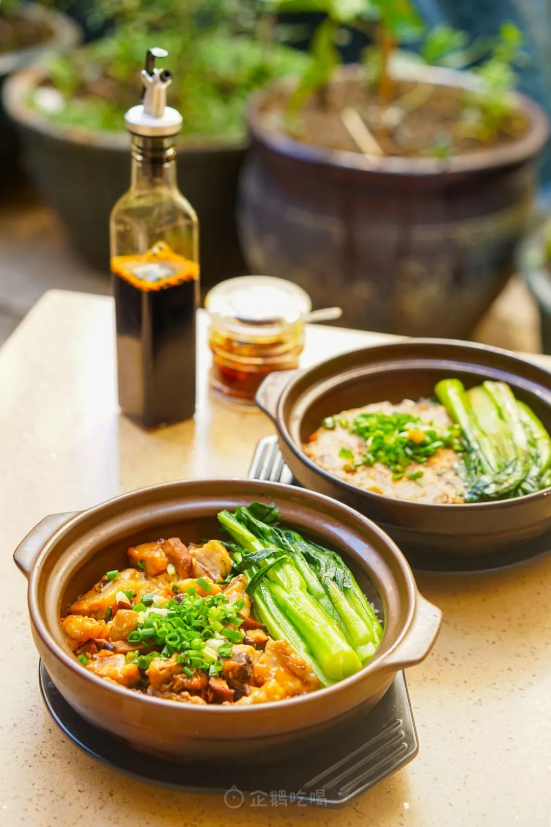 营业时间长,所处位置不在游客集中区,对游客尤其友好。那天喝的是沙葛萝卜汤,太浓醇了!汤体有厚度有甜度,喝得出是相当足料的老火汤,才收我3块钱,实诚,太实诚了。每家煲仔饭基本都有几块钱一碗的炖汤,这家是试过炖得最好的。在广州,还有一种与煲仔饭平分秋色的饭类:砵仔饭。该品类我们的爱店是这家汶记,远超同行之处,就全在自家制肉码上。砵仔饭就盛在这扁平的土砵上蒸熟,不会和食材共煮,与煲仔饭相比,饭粒更湿润,没有饭焦,吃更纯粹的米香。