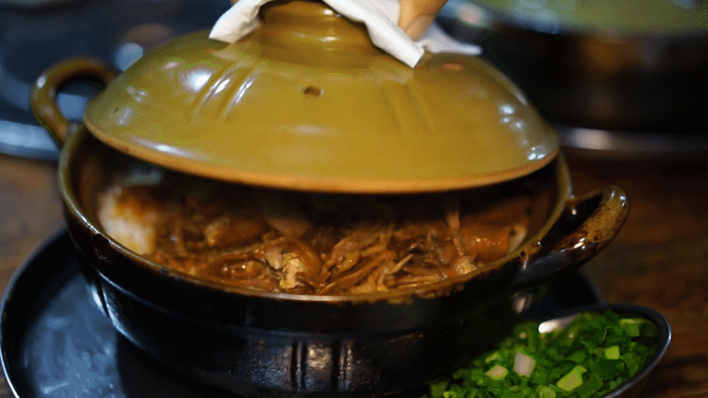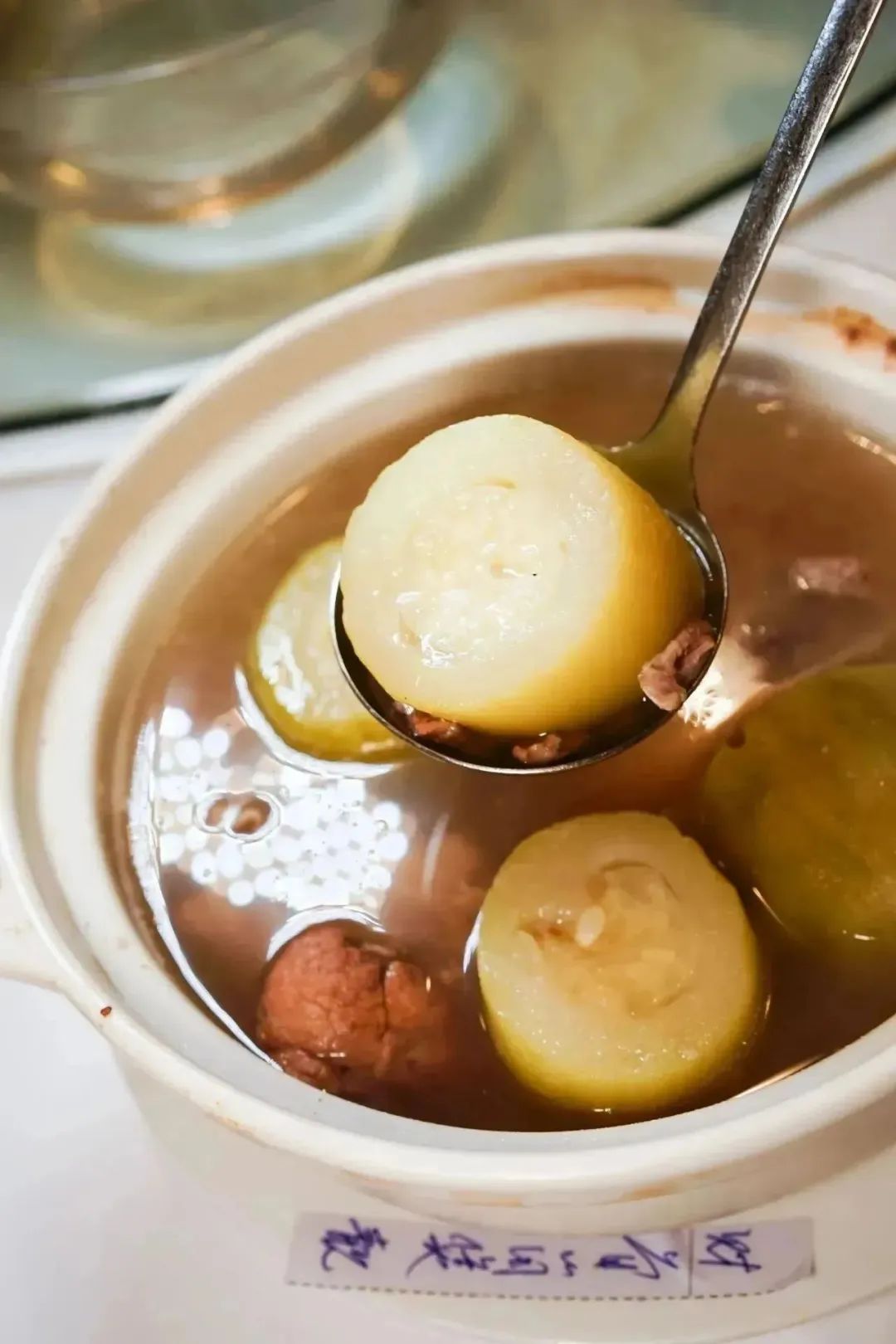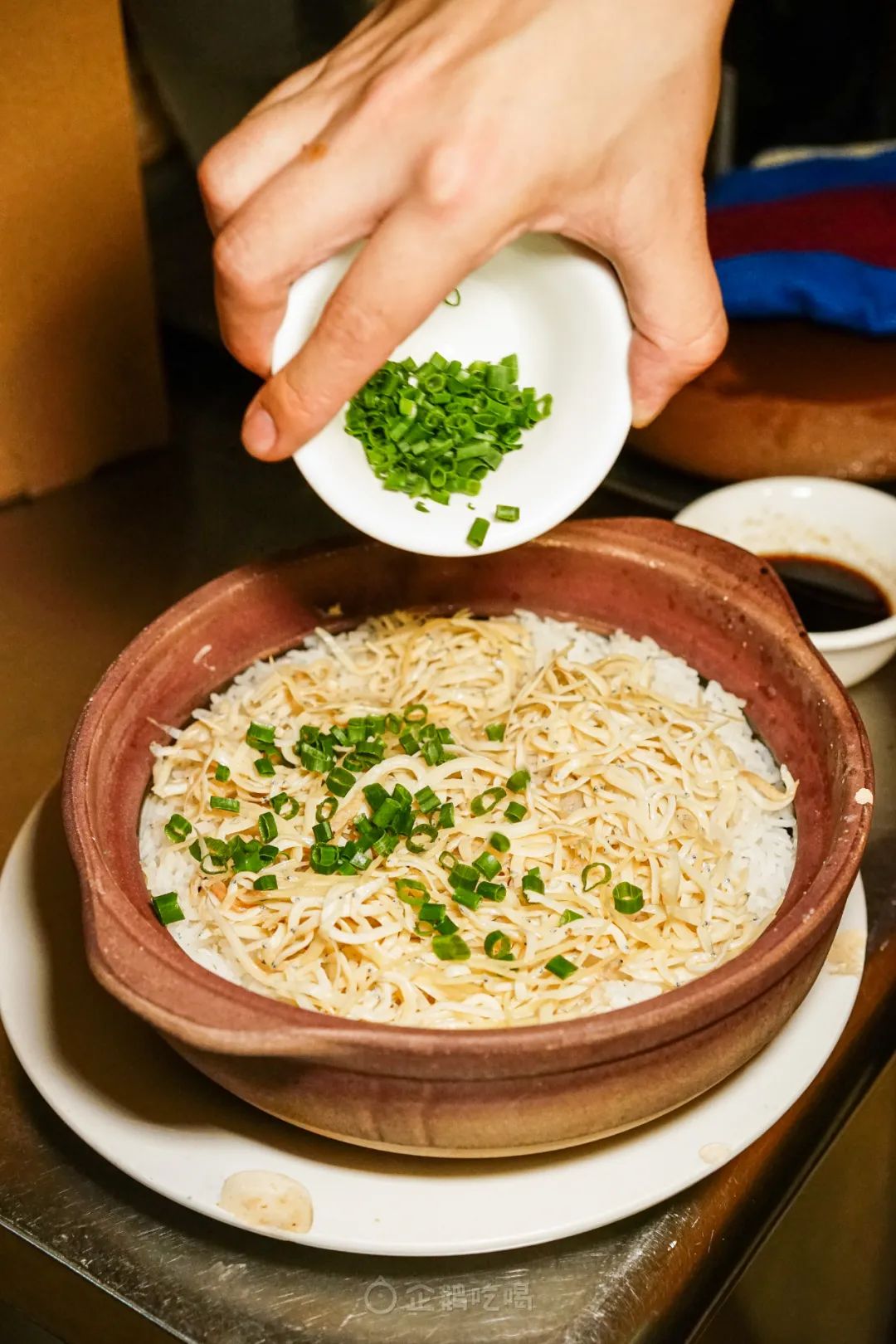 营业时间长,所处位置不在游客集中区,对游客尤其友好。那天喝的是沙葛萝卜汤,太浓醇了!汤体有厚度有甜度,喝得出是相当足料的老火汤,才收我3块钱,实诚,太实诚了。每家煲仔饭基本都有几块钱一碗的炖汤,这家是试过炖得最好的。在广州,还有一种与煲仔饭平分秋色的饭类:砵仔饭。该品类我们的爱店是这家汶记,远超同行之处,就全在自家制肉码上。砵仔饭就盛在这扁平的土砵上蒸熟,不会和食材共煮,与煲仔饭相比,饭粒更湿润,没有饭焦,吃更纯粹的米香。