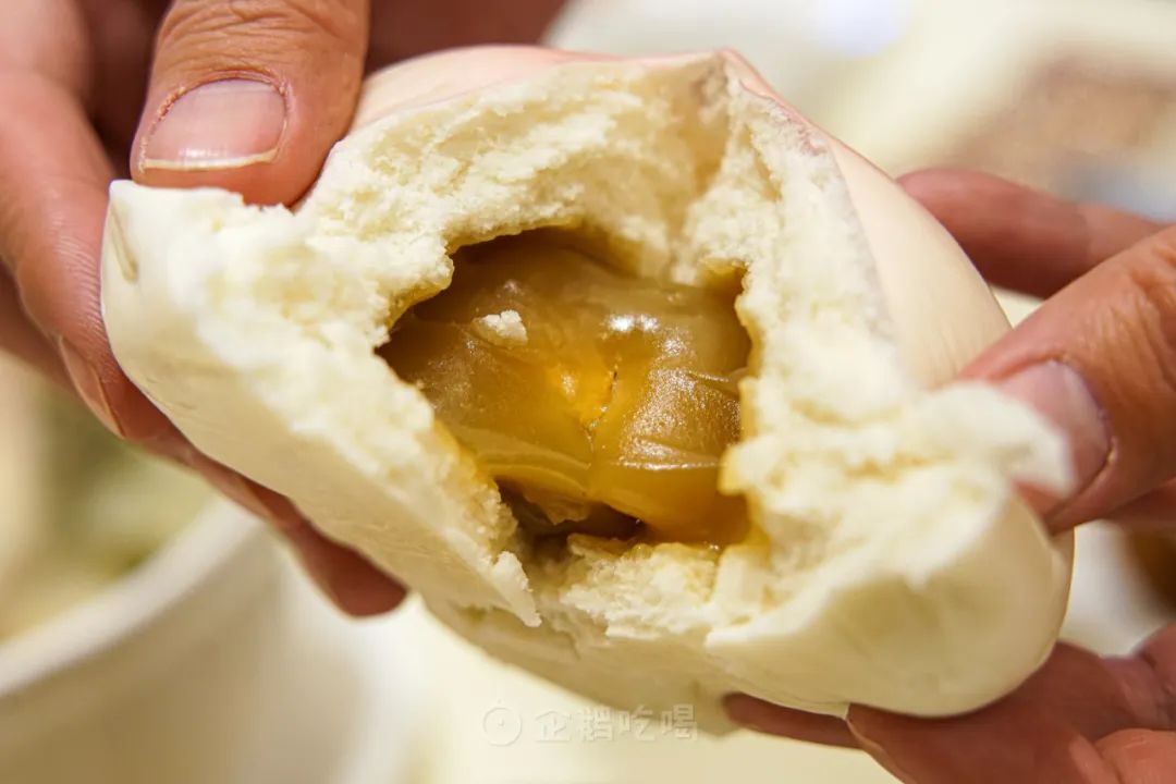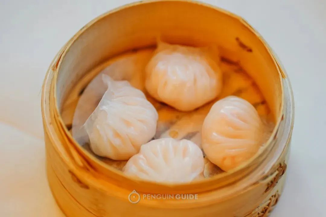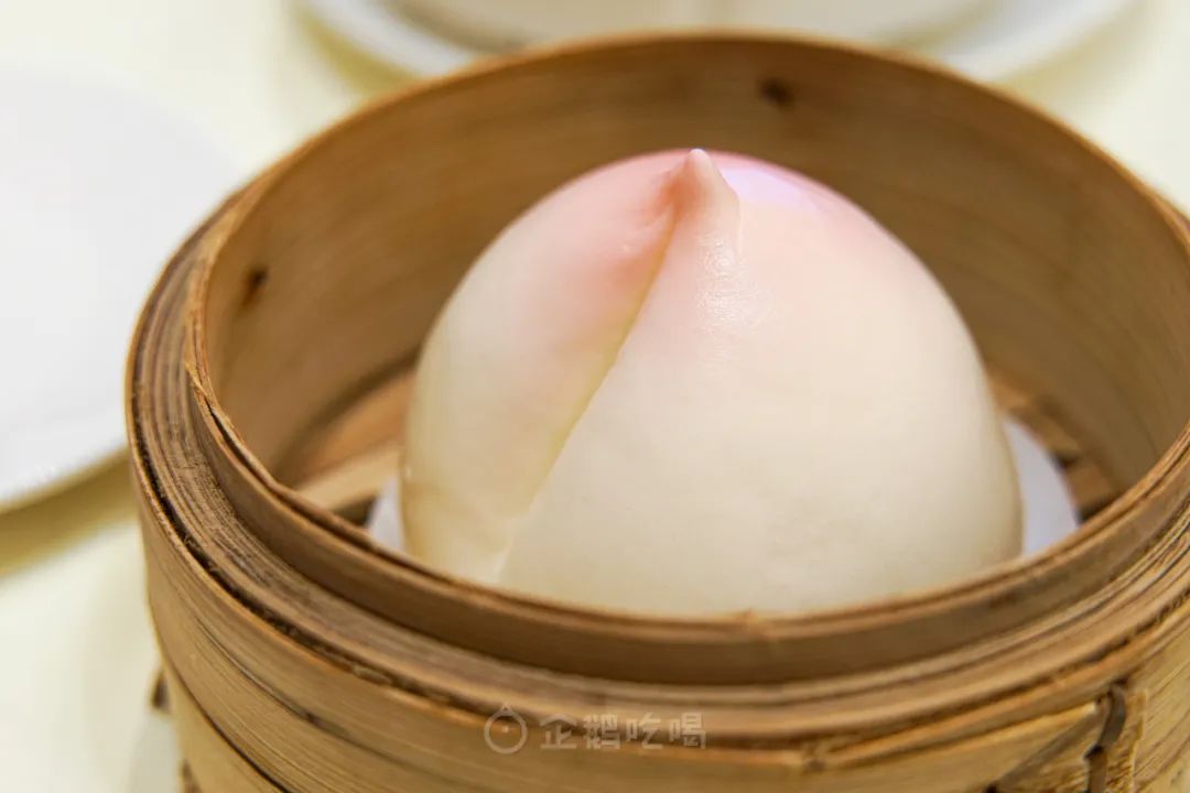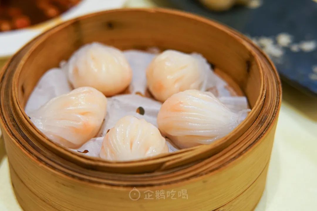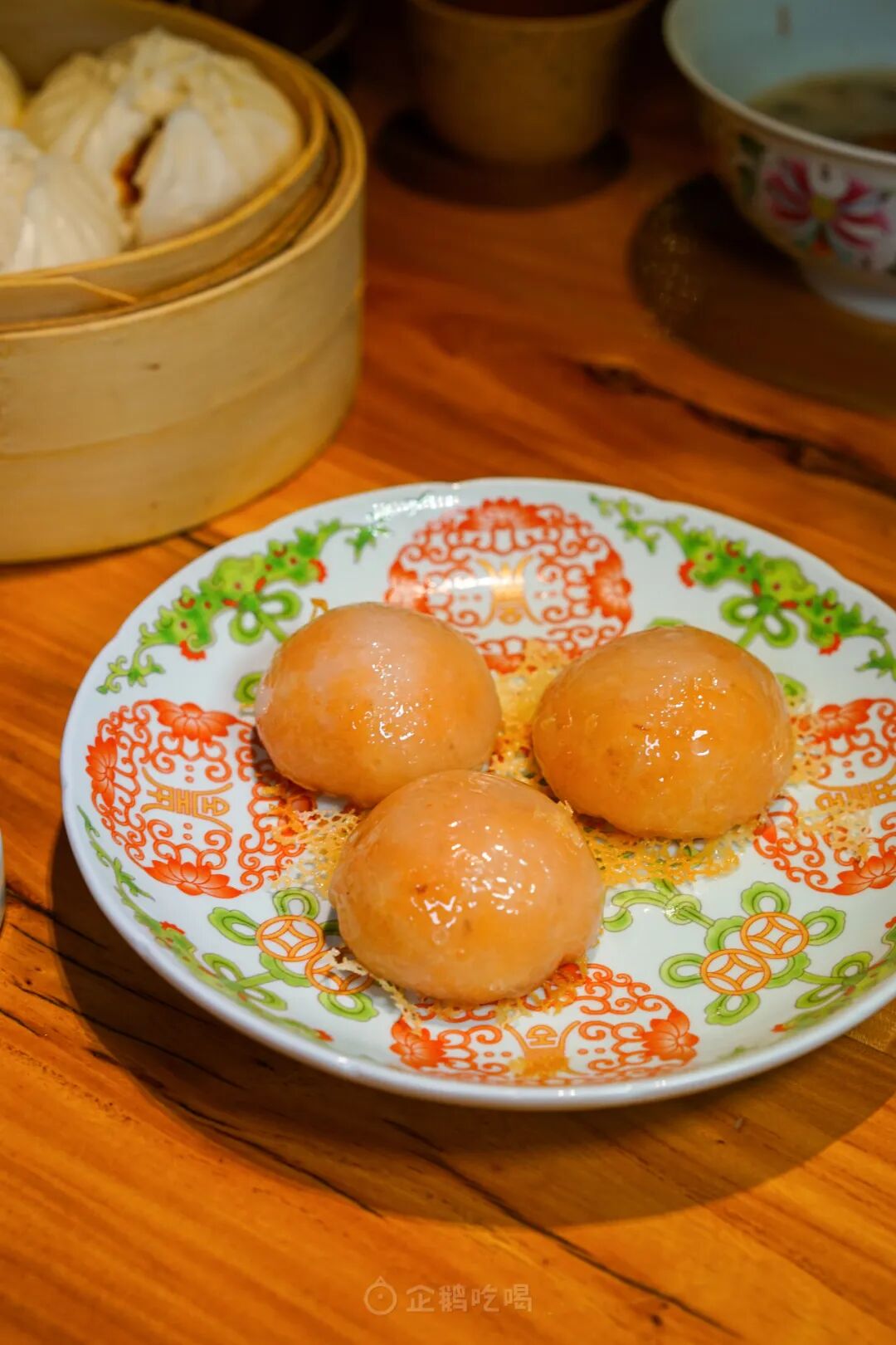看看这虾饺,标准弯月型,一口大小,皮薄而透亮,褶子细密,每次蒸的火候都正好。流沙包,馅料与蒸制时间配合极好,让流沙处于流而不稀的状态。