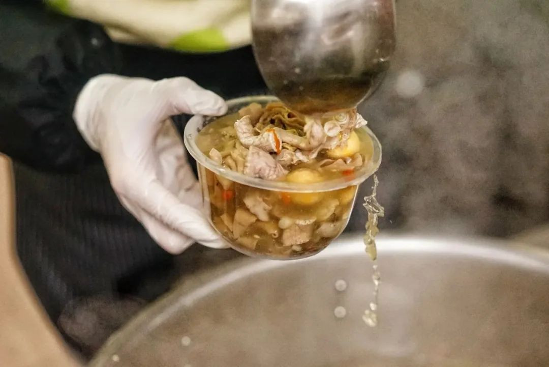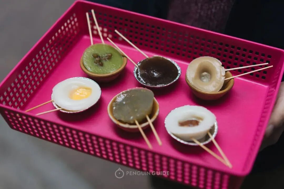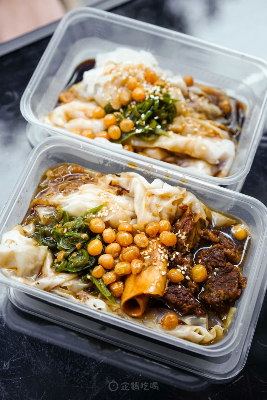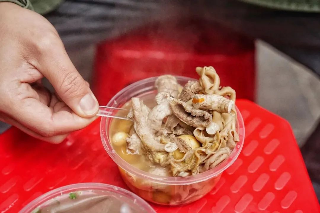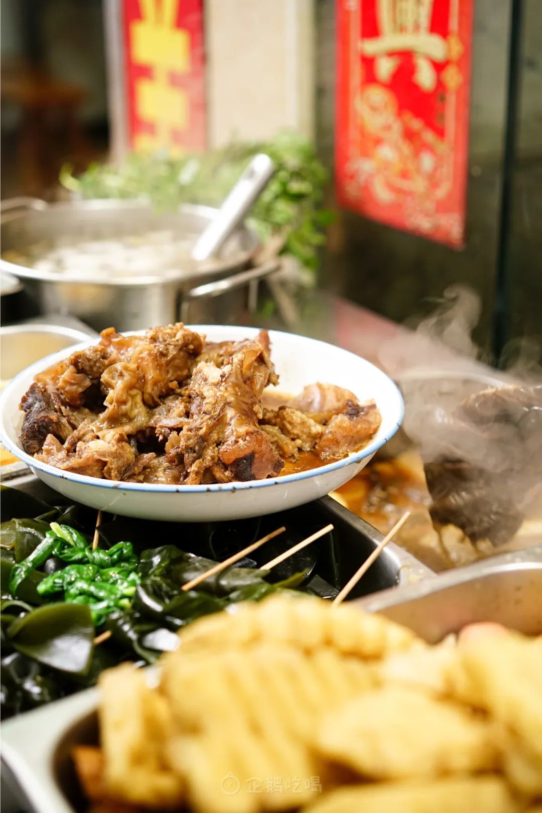 而另一家是走鬼档牛杂,就在江南西的紫来大街内,是经营了17年的老车仔档了。这家的特色是部位众多,把牛下水一锅打尽,随便数数就有牛肺、牛膀、牛肠、牛脆骨、牛筋,而且牛肚也有分常见的毛肚和更矜贵的金钱肚,还有少见的牛心腚。也就是黄喉。酱汤的调味克制,酱香不会过甜过咸,没有盖掉高汤本味。虽说所有牛杂都是共炖一锅,但不同部位口感各异,其实下食材的先后次序和炖煮时长是有讲究的。如果一家牛杂每一个部位都是同样的绵软,那是偷懒的表现。