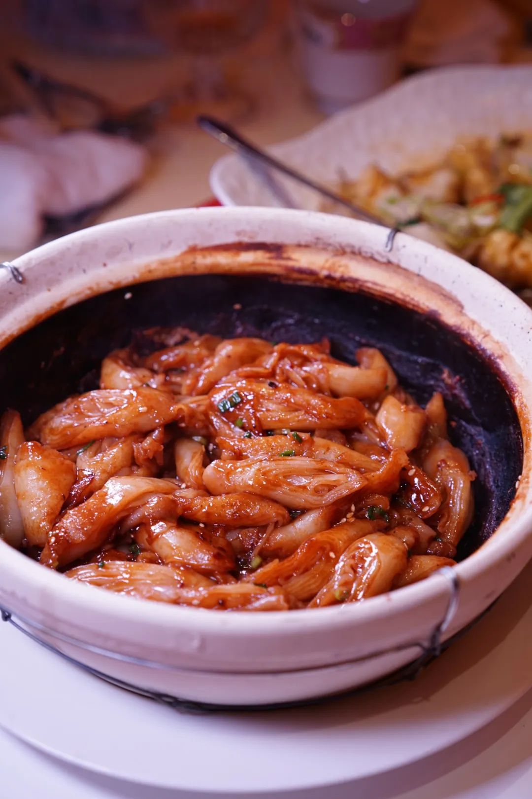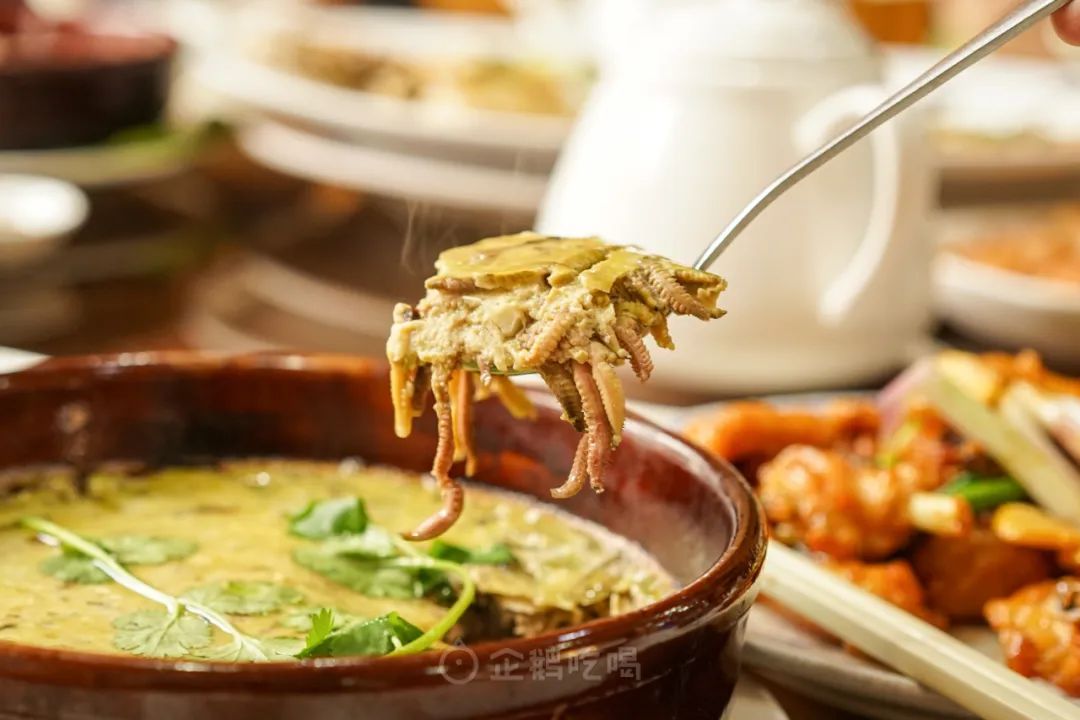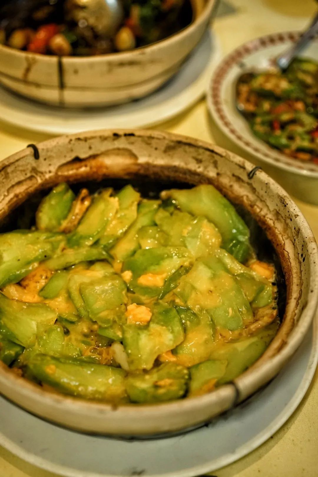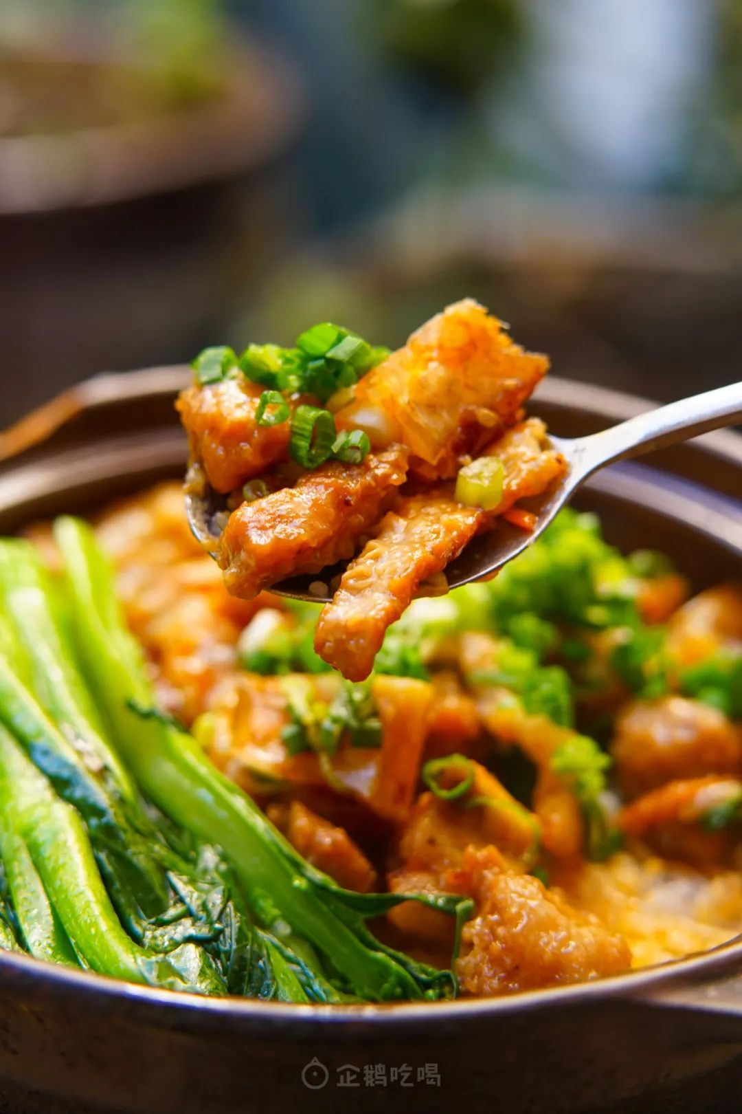 蟛蜞对水质的要求很高,番禺化龙、石碁一带因为水质好,污染少,所以仍能采集到优质的礼云子。水乡限定的禾虫,这里的砵仔禾虫做得尤其新鲜饱满。这种虫子通体皮薄,一口有爆浆之感。倒入生油让禾虫猛吸,再拌入鸡蛋、生蒜、陈皮丝等材料煮焗,吃的是一口甘香的蛋白质。禾虫的产季是每年春秋,第一批最肥美。当地人更爱连蛋都不加,吃纯禾虫。平时还能吃到这种生在水塘的浮游生物——泥虾。腌制成酱来蒸鱼,那天吃到一尾泥虾蒸龙脷,太鲜美了!除了食材取胜。这家店还会做一些几近失传的功夫水乡菜。自家手工制作的面豉酱,内里有南姜和花肉,肥美带微辣,食味浓郁,小小一碟就是杀饭利器。还有绿豆糯米酿大肠,在粉肠里细致地塞入绿豆糯米,绵糯又带点韧度。开业超过40年。店里的蚝油干逼鸡、砵仔莲藕粉、炖汤都做得很出色,是城中老饕们特别钟爱的餐厅。惠食佳可能是广州最有名气的餐厅之一了,虽然知道的人很多,但我们还是想啰嗦两句点单技巧。啫啫操作简单,猛火焗即可,食材状态在一秒间定输赢,更讲究前期对选材、处理以及酱汁调味的把控。