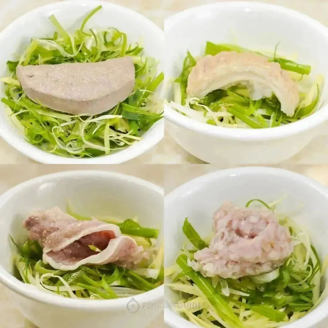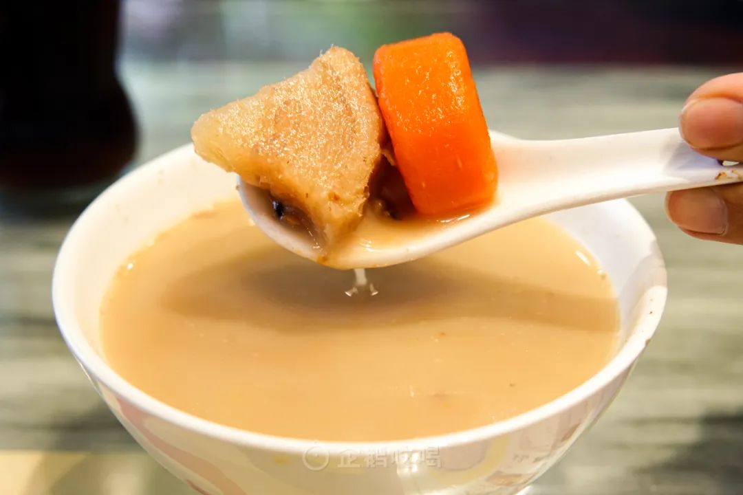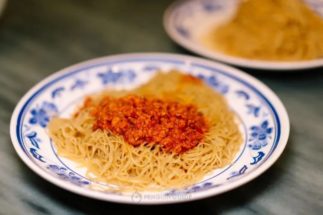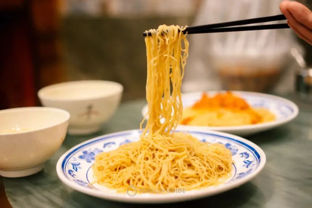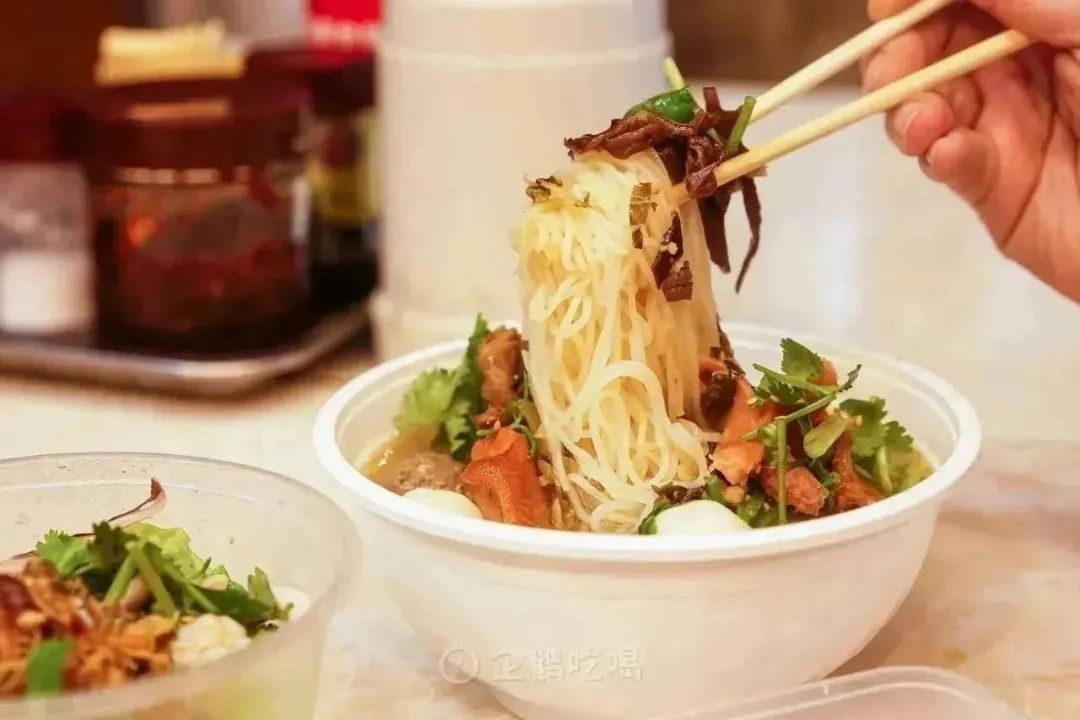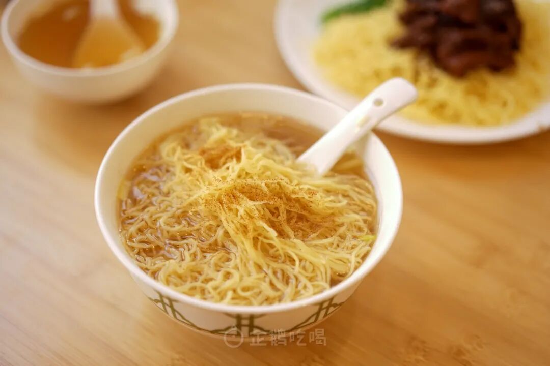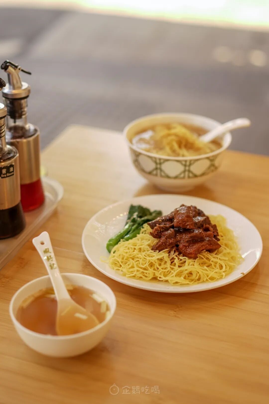 牛腩肠粉也很推荐,和传统肠粉不同,并不是作为馅料,而是作为浇头存在。所用的是自家卤到软滑入味的牛腩,而调料也直接以腩汁代替酱油,微厚的肠粉能更好地吸收卤汁的香气,别有一番风味。老广的血液里流着的都是汤汤水水,所以炖汤铺也是地道食物中不可缺的一环。先来一家老字号汤品信行丰炖品皇,这家的特色是汤品众多,每日有近50款不同食材与功效的炖汤可选,善谈的老板还会根据你的需求推荐汤品,是令人安心的实在小店。接着是进阶版的炖汤店,这家上膳汤水的单价会高一些,但选材也更上乘。早在普遍炖汤小店只有椰子鸡、水鸭、排骨的时候,这间店就开始用更矜贵的响螺片、老龟炖汤,会根据季节转换汤品,份外讲究。这个季节可以来一盅雪梨炖响螺片,随手一捞都是大片的响螺,汤料实在,炖得香醇。虾籽记是我们最近发现的新晋面店黑马。菜单专精于云吞与竹升面的不同组合,主推的鲜虾云吞面和鲜肉云吞面都没有坑,从上桌就知道稳妥。一清二白的竹升面,要先在碗底放韭黄、少许油、放入汤匙,再放煮好的云吞,到最后才叠上竹升面,这是为托起面条让它不会过度浸软,从而影响了口感。竹升面走碱确实不错,入口柔韧带筋道,带微微蛋香。汤头鲜香清澈,有大地鱼和虾子交织的咸鲜香气。云吞长得也很标准,一口大小,皮薄馅靓金鱼尾,内里的鲜肉香气丰美,完全是云吞的三好学生面貌。这家出品,对得上旧时老广所说的一碗标致的细蓉:九钱面,四粒云吞,半寸韭黄,一勺汤。面条好,自然也要吃一份虾子捞面,加了牛杂的肉码,上桌迅速拌匀,呼呼吞下这一口爽、滑、弹。最难得是,这间店竟然开在这几年最红的游客街道「永庆坊」,蚊型店承载了极大的客流量,竟然也守住了品质,希望店家能一直坚持下去。面店的另一家,恩宁刘福记,是我们推荐得最多的广府面代表了。其它面店多少还能吃点肉,但这家纯吃面都能感受到满满细节:汤底大地鱼味浓郁,云吞面爽弹无碱味,直接点毫不花巧的猪油拌面,就吃得出面条的香气与劲道。炸酱面也很优秀,肉酱剁得细碎,一经搅拌便和面条充分交融,香气浓中带微甜。西华路是广州宇宙中心般的美食街,但是店铺良莠不齐,游客也多,不少老店的水平总有争议。但如果说到在横街里的食为先,大部分老广都不会否认它的地位。一碗杂锦粉丝,配上熬煮得相当juicy的瑞士鸡翼,就是老广成长中的一碗comfort food。这应该是整个市区最好吃的一份捞粉,满眼都是炫技:米浆倒入窝篮里,摇得均匀且薄可透底,蒸好抽出扫上一层油,一倒便整片脱下,马上放在另一个倒置窝篮上,迅速切几刀,便淋上浇头上桌,整个过程不消2分钟。
