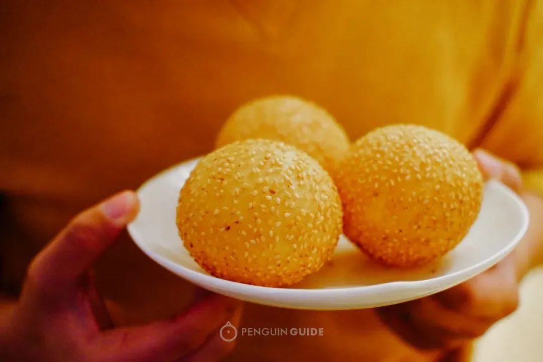 还有一道酥皮萝卜糕也非常厉害,必点。就连煎堆这种卖不起价格的油炸物,利苑的版本能做到入口脆,咬口糯,是与别不同的层次。前者软糯缠绵,是一顿早茶的最好收尾,后者最初就是利苑发明,没有比这里做得更正的版本了。