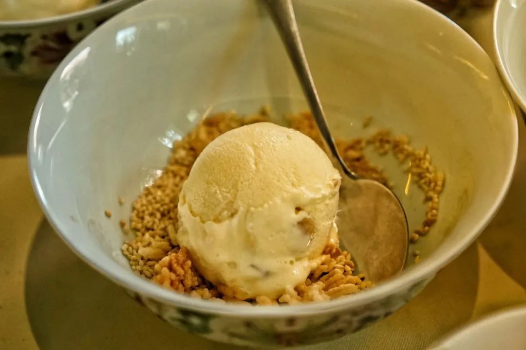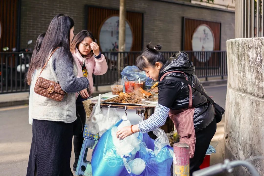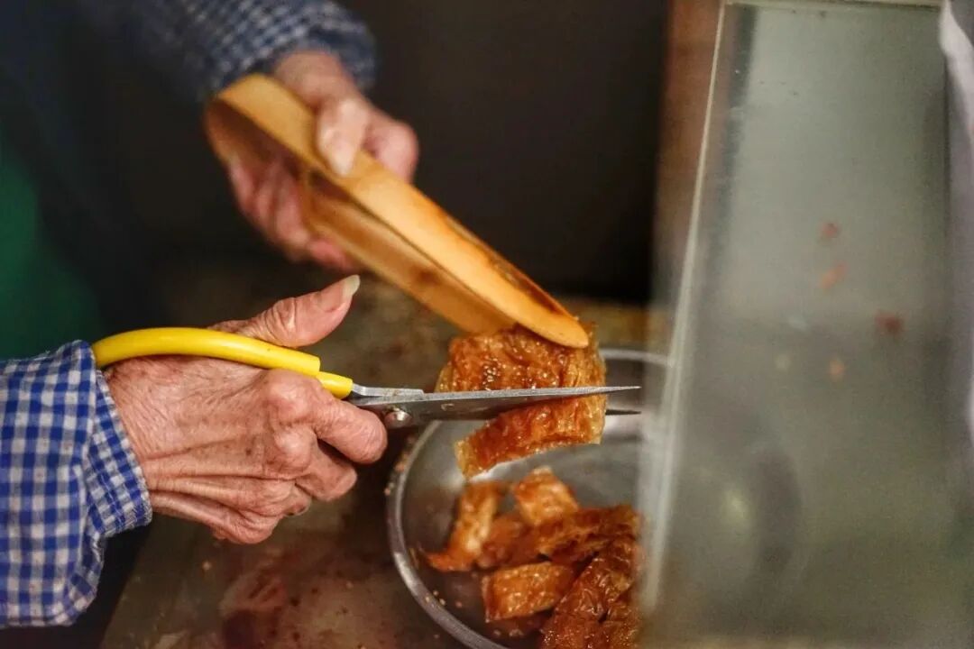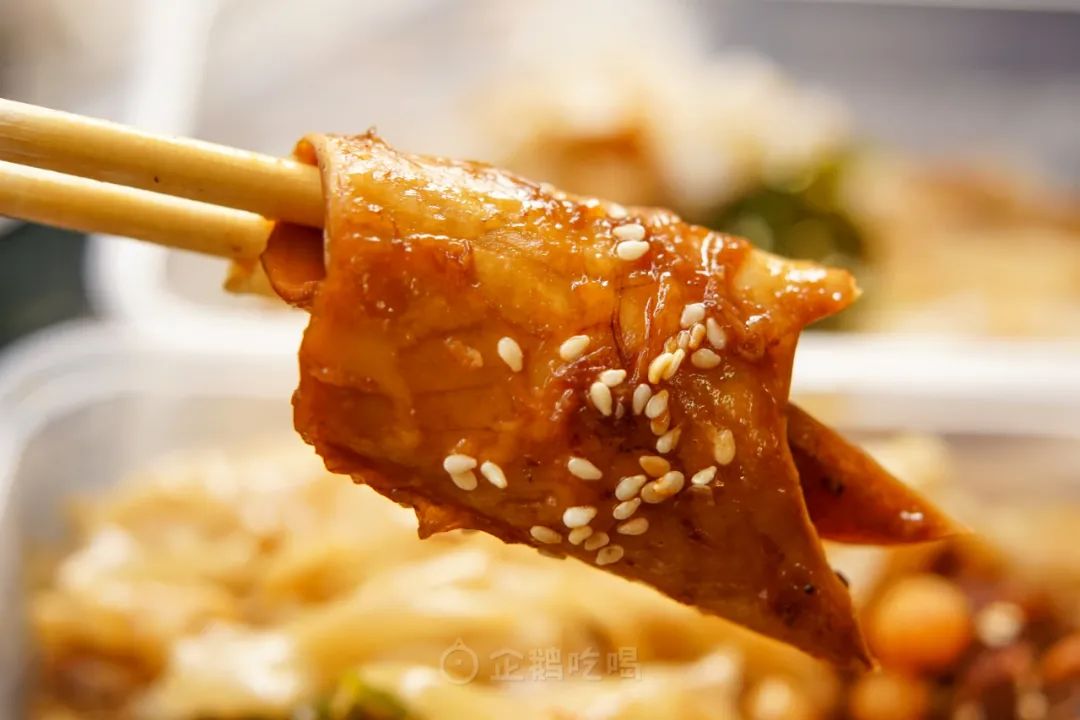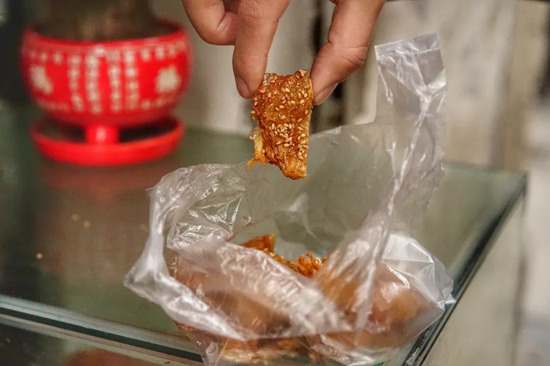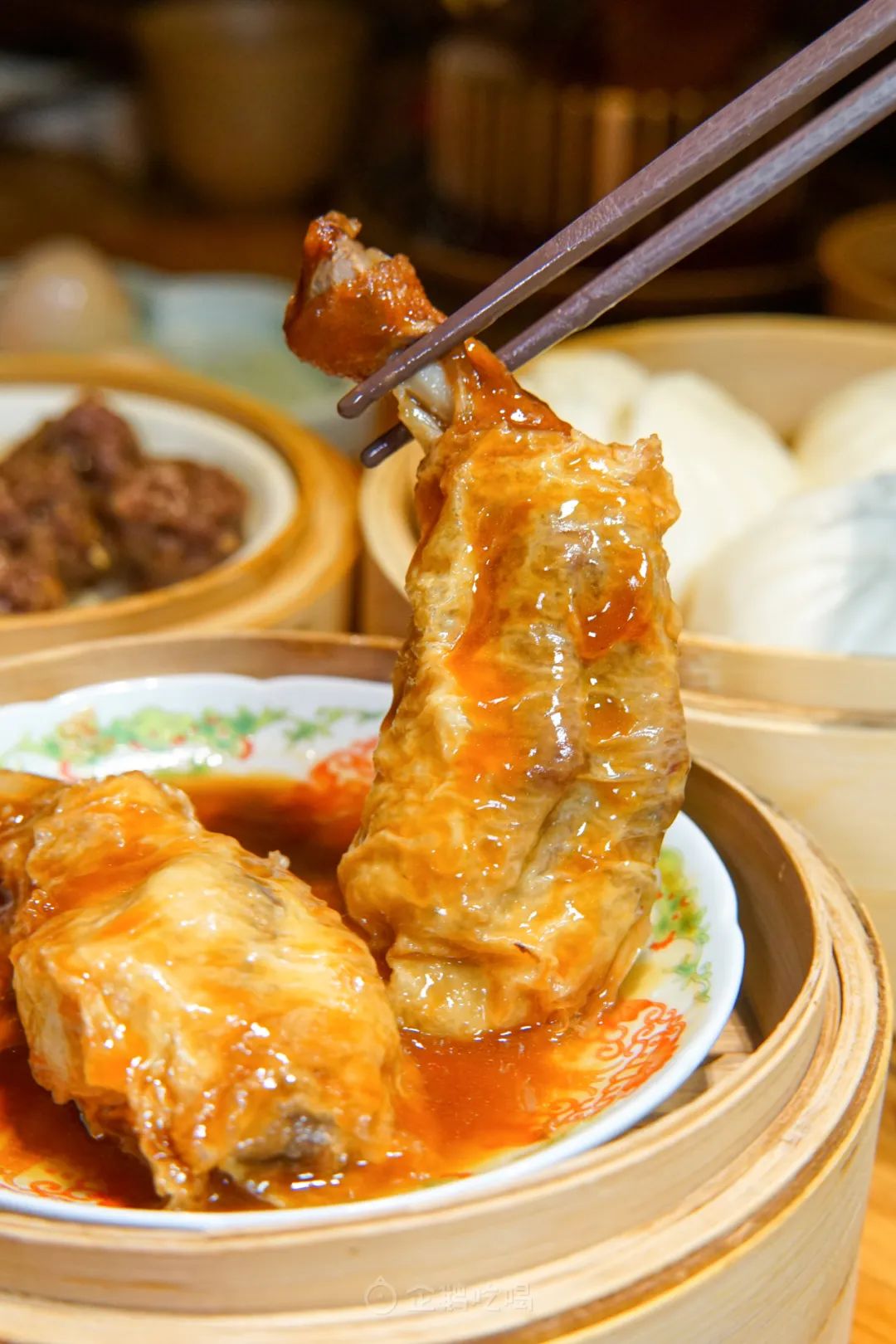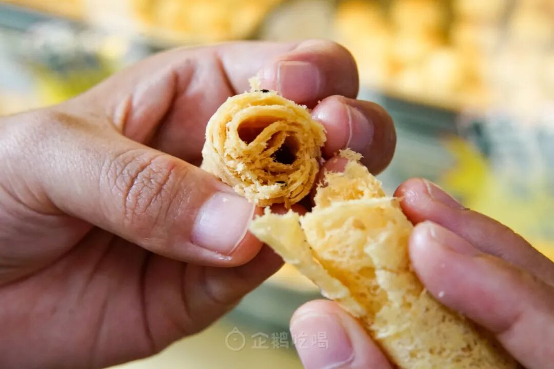 其它口味也不错,例如椰汁、斑斓、黑芝麻、姜汁、焦糖栗子等。价格在2-3.5元区间,实在没什么吐槽空间,就是小店产能有限,周六日会卖得比较快,想吃要早一点去。藏在小巷里的这家菜根香嫡系斋卤味,是经营30年的老字号,只做手工素食。只要想吃斋烧鹅,就只会想到这家,将腐皮炸得薄如纸,层层堆叠洒上大量芝麻,入口脆中带些许韧性,是几近式微的古早味。