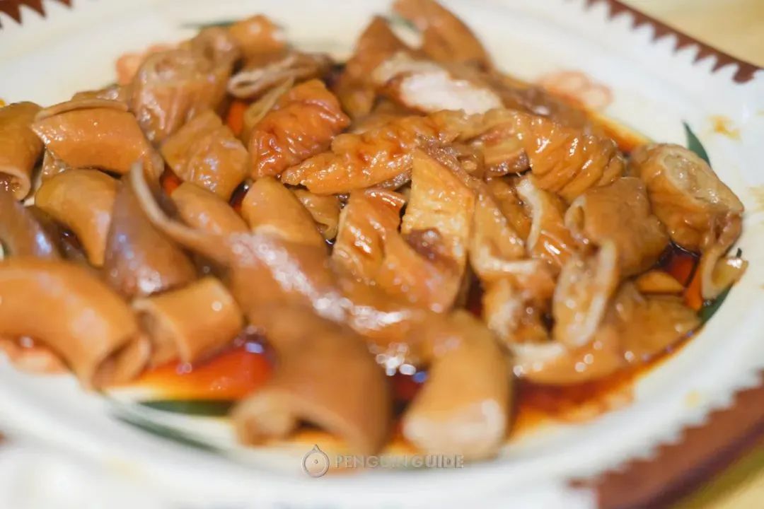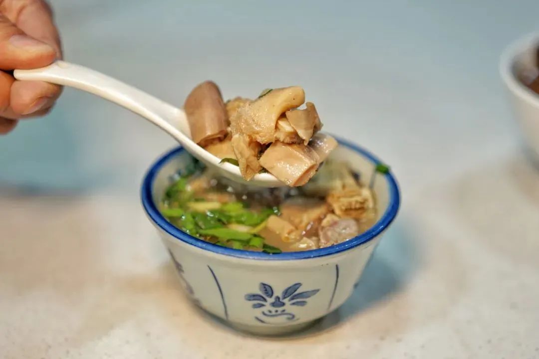 这档就处理得很细致,例如金钱肚,煮得入味之余,还保有回弹的口感;牛心腚则爽口脆弹,易断易嚼;各种口感交织起伏。广州浓汤派牛杂也有的,主要是吃牛三星,我们吃得最长情的是这家容意发。汤底有浓厚的药膳味,牛三星处理得很干净,充分吸收药膳香气,细分部位也不少,能吃到如牛骨髓、牛双弦、牛心顶这些小众部位。广州可以吃到猪肠的小店众多,而我们认为最宝藏的一家,是隐藏于居民区小巷里的猪肠仔。猪肠选材优秀,除了有饱满的肥膏,炖煮得软滑,还愿意做猪肠中更贵的部位大肠头(量不多,迟来可能吃不到),更丰腴且有嚼头,酱汁的调味也很平衡,香而不咸,方方面面都很优秀。广州人爱吃鸡,但要说吃新鲜鸡杂的店,还真的鲜少见到。而这家鸡什猪红,应该是全城独一家只做这品类。每日9点半出新鲜猪红,10点半开炉新鲜鸡杂,凭的就是新鲜无异味且不花巧的做法,一早就有一堆街坊熟客排队。为什么是独一家呢?大概因为鸡杂体积更小更下栏,不仅卖不起价格,处理起来还更麻烦,不一小心就腥味重口感柴,这么吃力不讨好,自然没什么人愿意用心做。