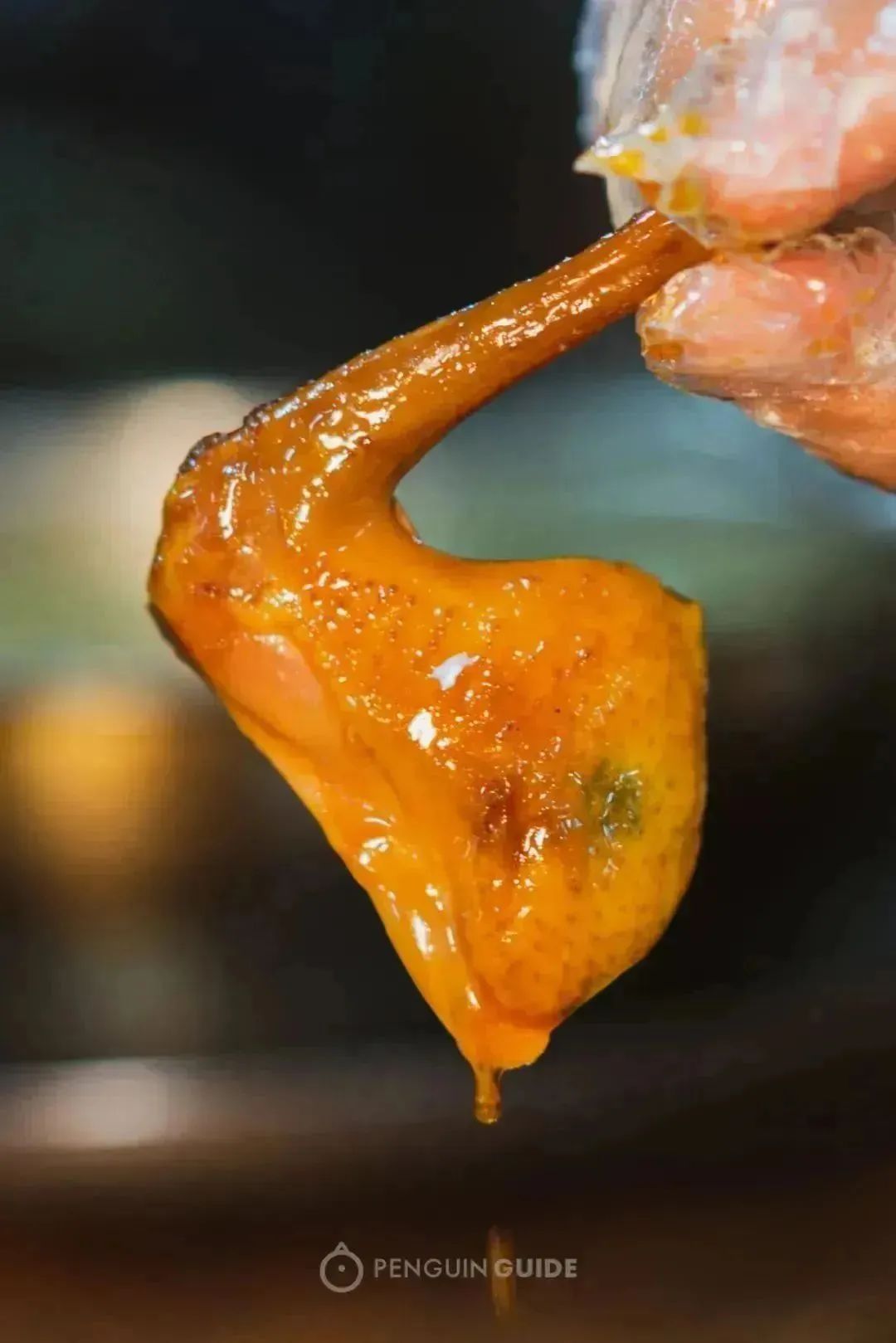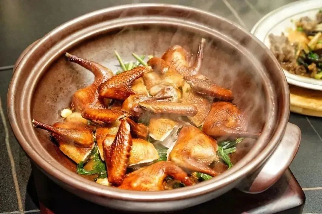 最近过去,发现吃法更多了,例如招牌菜豉味猪鼻筋可以和排骨做个双拼。用酱汁简单调味后以猛火焗至干身,把味道收纳其中,吃完只有粤菜里对复合香气的最高评价「和味」。关于这家店,我们专本写过一篇深扒他的好吃之处,具体可以点这里(或者直接拉到文末抄我们的推荐菜)。头家夜粥自开业不久就拿下米其林入选餐厅,也因性价比问题产生不少讨论与争议,占据很长时间的城中热话,但吃到至今(即便价格限制无法天天来吃),我们仍然认为这是一间选品精,水平高的宵夜好店。常见的潮汕品类如生腌、卤水、小海鲜皆有,更能吃到普通潮汕菜馆没有的出品。例如潮汕菜里必备的牛肉粿条,这里的做法是牛肉只选弹牙爽口的吊龙,配以成本更高的垌坑粿条(比普通粿条贵上一倍),炒出来一盘肉盖粿条。例如离水即死的剥皮牛,这里能找到游水刺身级别的,做成潮州风味鱼生,搭配潮式配菜如油柑、九层塔、油豆酱等混合着吃,与顺德鱼生相比是完全不同的风味。一间潮汕宵夜店,只要鲜货快且精就很能打了,偏偏这间店还有一股爱研究不同风格新菜的势头。一道姜蓉焗沙尖鱼,将姜蓉一半煮一半炸组合用来焗沙尖,便让鱼肉交织出两道香气与口感,香迷糊咯。甚至还用到鹧鸪只取腿肉做出「炸鸟腿」这种吃法,开发出鹧鸪的不同食味,真有点太史菜那研发劲儿。这家店,是去年的新晋名厨食堂,掌勺人均1000+元餐厅的大厨们,都扎堆来这家人均小百元的店,吃得乐此不疲。全因为这家店,能挖到很多优质的清远食材,养殖数百日的清远鸡自不在话下,还有市面不多的清远青头鸭,清远山民特制的腊味。当然还有清远本地北江鱼鲜,在整个广东老饕间名气都很响亮,可以说,这家店仿佛掌管北江风土的“神”,细到每节支流什么鱼鲜好吃,都晓得清清楚楚。关于这家店的好吃之处与点单攻略,我们也有详细一写,可以点这篇。广东人爱吃鸽子,但翻来覆去主要都是红烧卤水,直到出现这家鸽子界的懂王,竟然将一只鸽子做出超过30种吃法,从味型、搭配到做法上都有自家见解。豉油皇乳鸽,借鉴了传统的豉油鸡,巧妙地以冷浸手法处理。皮肉间夹带着肉汁,乳鸽的肉质软嫩柔润,啃起来带有非常明显的回甘。整家店以一鸽打天下,只用一种来自粤北山区,以鲜玉米和山泉水为饲,生长期仅仅20天的乳鸽,肉质软嫩香滑,自然做成什么风格都好吃……推荐每桌必点的鸽丝焗饭,鸽肉略微腌制过,手撕成肉丝状,加入饭中共焗,掀盖时简直肉!香!四!溢!