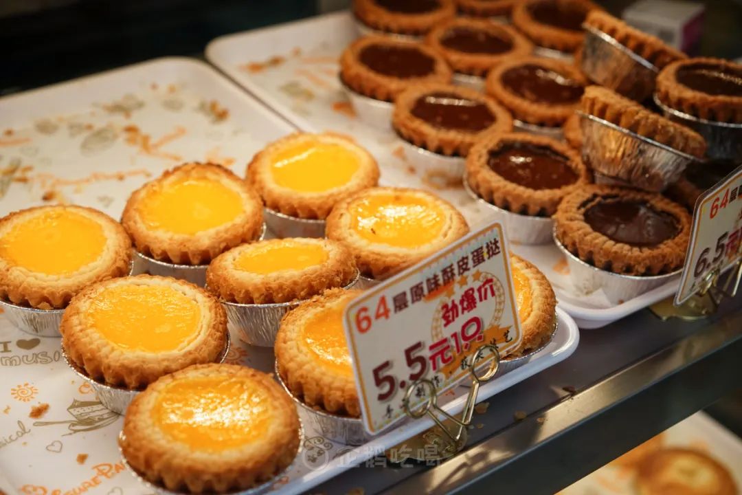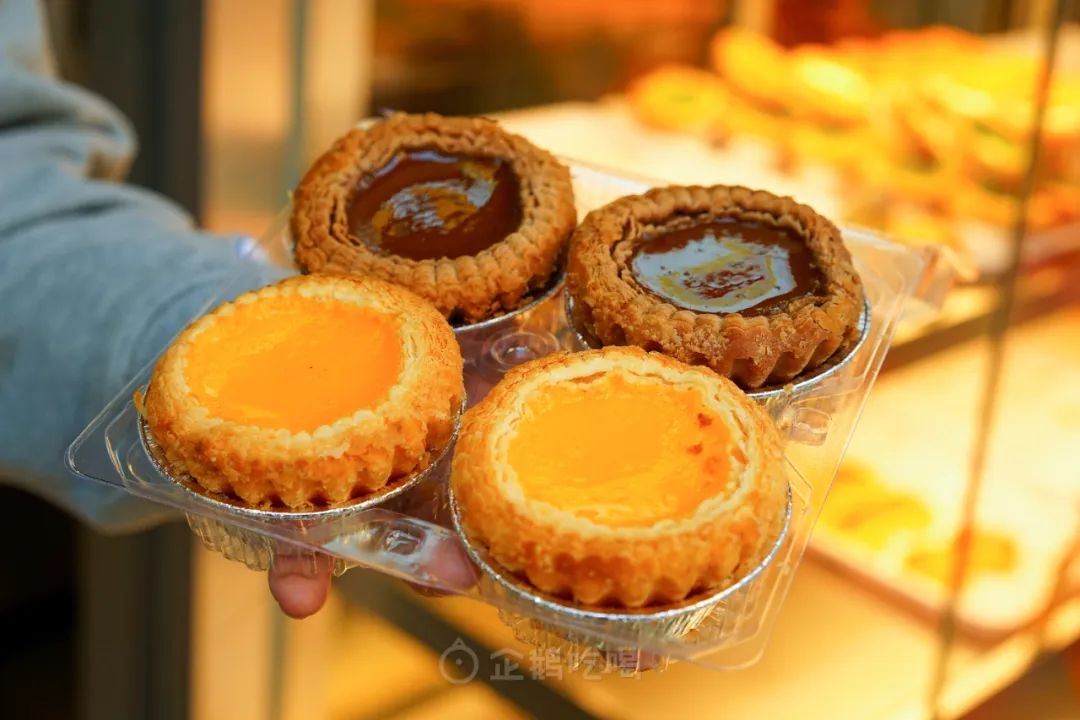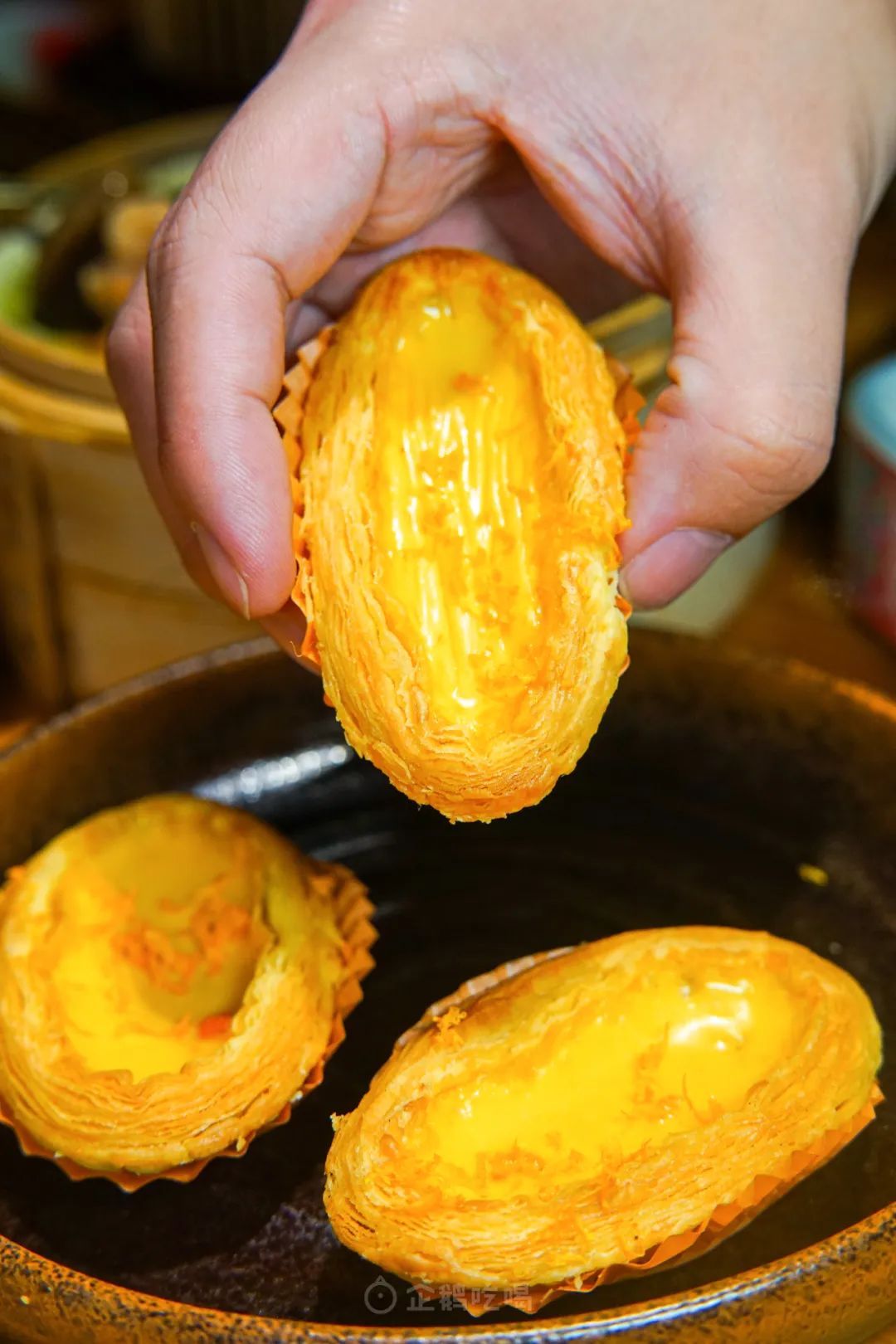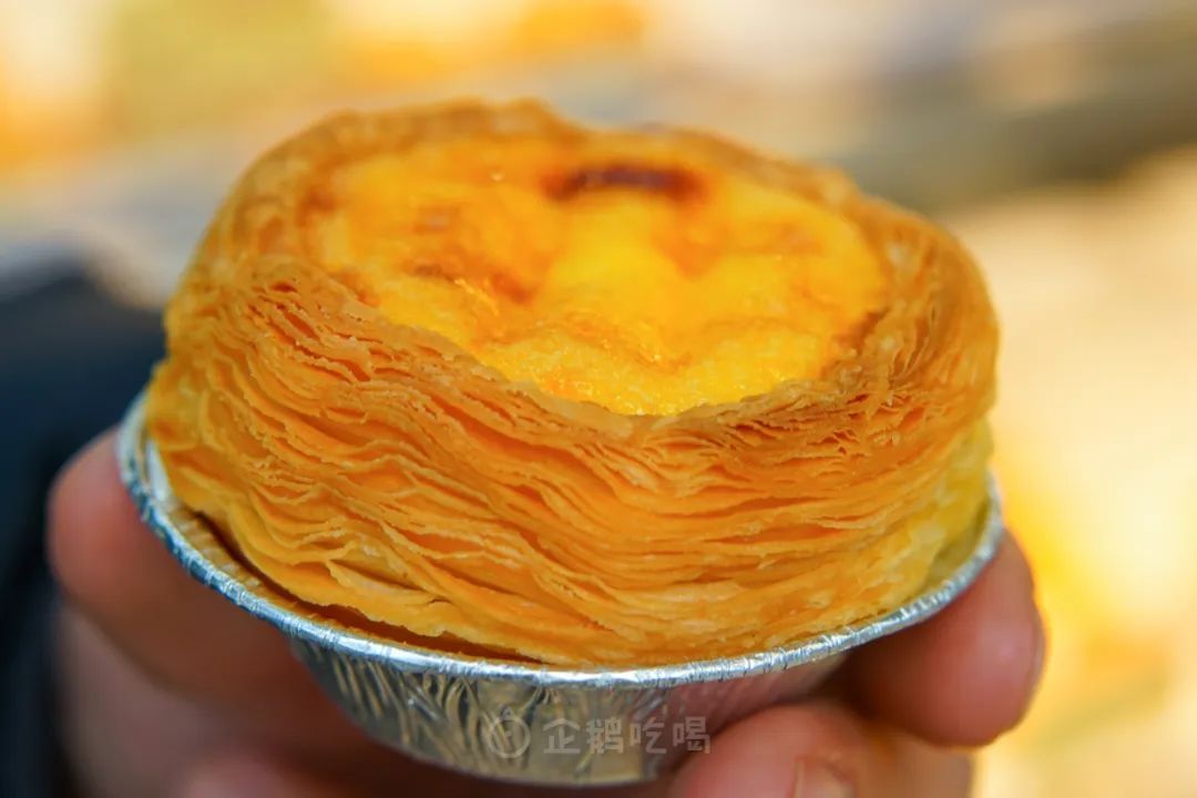 鸡仔饼爽脆中爆发浓郁的猪油香,整体咸香酥脆,久吃不腻,称得上鸡仔饼的最高境界。这家的蛋挞和葡挞同样是实力选手,几块钱一个,酥皮有一定空气感,疏松香脆,最上头的是那口澎湃的蛋浆,不硬不水,甜度与蛋香都很平衡。