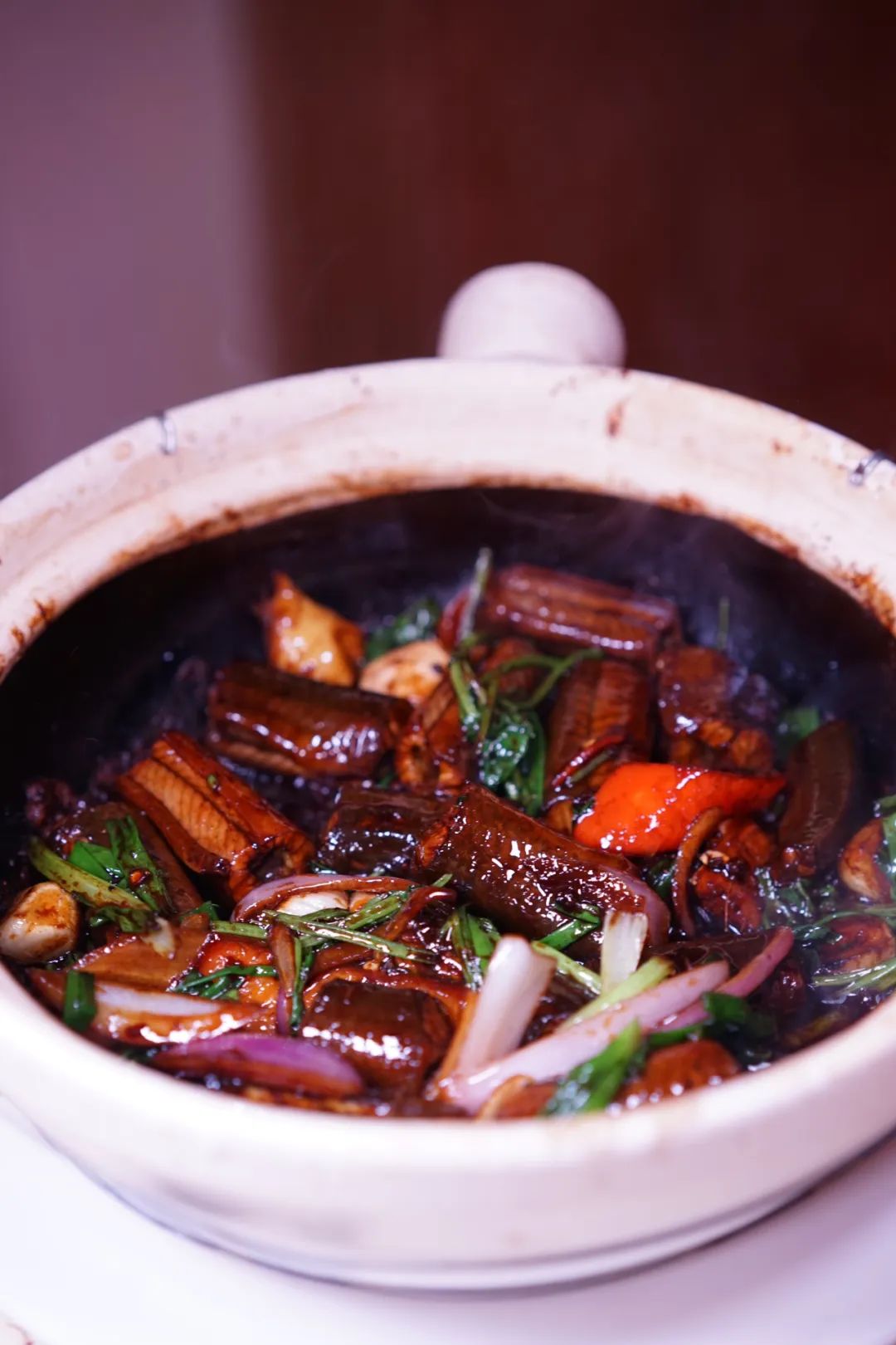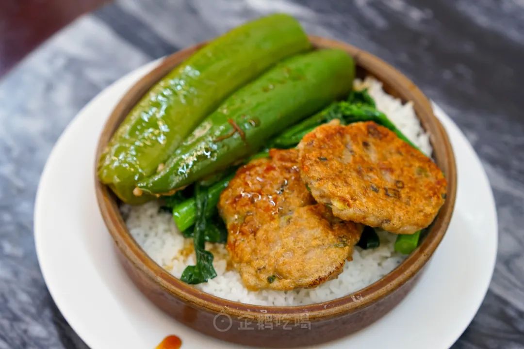 鲜见一家砵仔饭店,愿意耗时费力自制烧味,还有各种手打肉滑,其中每日新鲜制作的「肥叉砵仔饭」,不是等闲的肥叉,而是肥瘦比例直逼八二的邪恶肥叉,完全能媲美烧腊专门店的出品。蜜汁调得轻巧不过甜,含蓄地中和肥叉的油腻感,入口是带弹性的脂体,继而化成一汪甘美油膏,这么一小碟已成杀饭利器,够陪上两砵饭。
