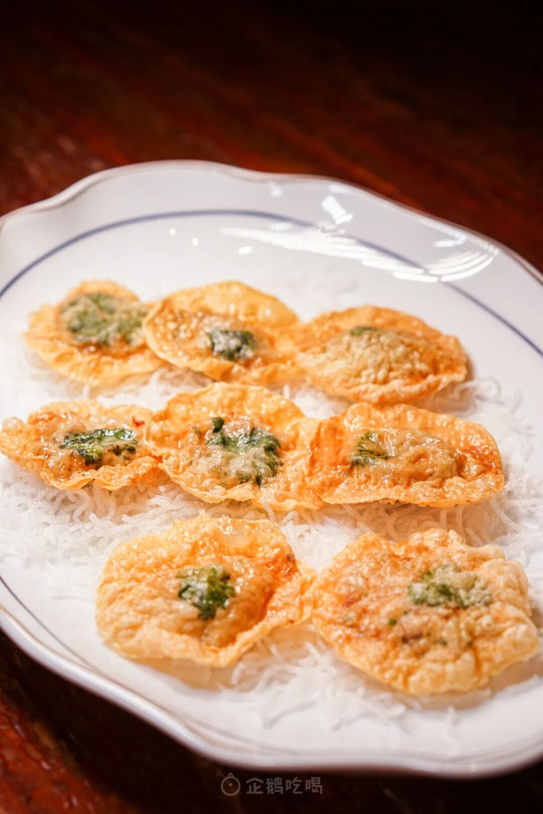 银萝千层酥,饱满挺身,是油炸物的最高境界。入口呲呲啦啦满桌飘屑,留下清甜多汁的萝卜香。