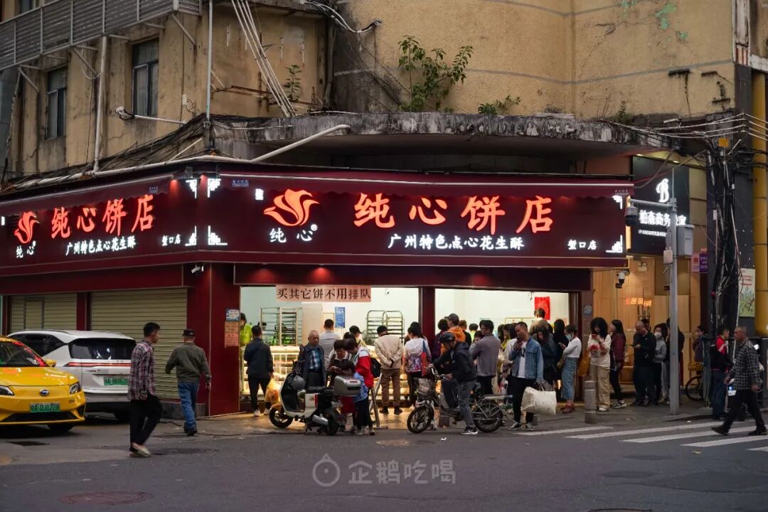 个人更喜欢明华的葡挞,也很蛋香酥脆也推荐「纯心饼店」的紫菜肉松卷,有如同现烤蛋卷般的松化酥脆,紫菜和肉松的香气,让咸香层次+++,是绝佳的香口零食。很多人知道是因为它家常年要排队购买的花生酥,其实,花生酥很多家都有做,出品也不差,倒也不用专程排上一个小时购买。其它不用排队买的糕饼,也很值得。还有香葱沙琪玛,从色泽就可以看出烘烤得嘎嘣脆,还微带焦香,和传统沙琪玛一样入口后也会粘牙,香气在口腔久久不散。就在纯心饼店的对面,还有一间糕饼品类丰富的「国强饼店」,也有一些独特的品类可以在此购买,例如烧卖酥、扭酥、红豆酥等,价格也相当实惠。也推荐一家手工炸物店「美美」,这里还在坚持做一道手工点心「芋虾」,在广州基本只有这一家在做。外层是卷得疏松的芋丝,内层是绵滑的芋蓉,入口咔呲咔呲如薯片,芋丝应声乱飞弹落,整个过程很动感。