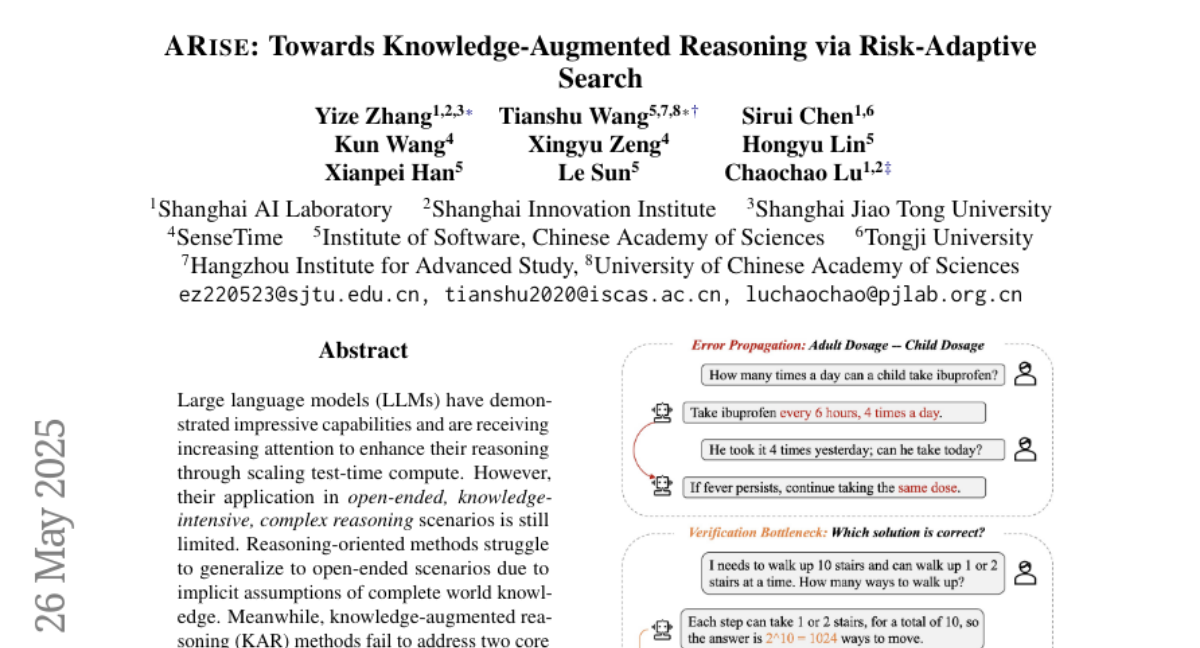 ARise: Towards Knowledge-Augmented Reasoning via Risk-Adaptive Search