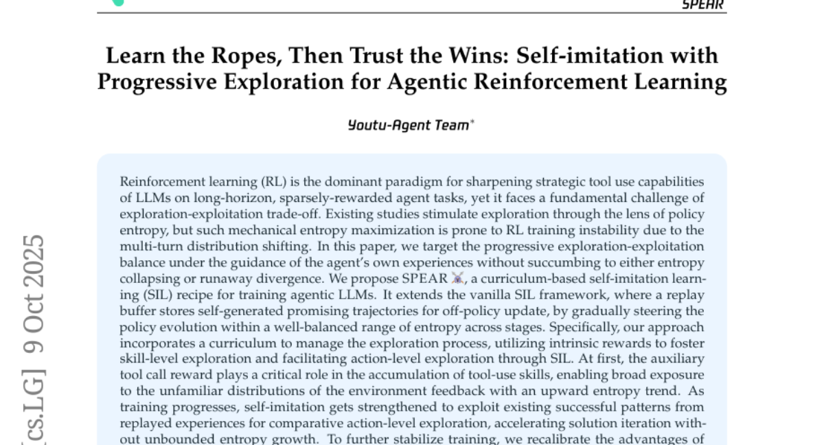 Checkpoints "Learn the Ropes, Then Trust the Wins: Self-imitation with Progressive Exploration for Agentic Reinforcement Learning" arxiv [2509.22601]